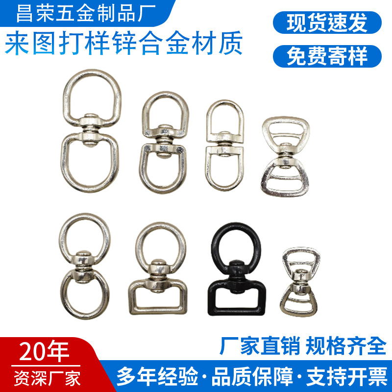 现货供应锌合金旋转环扣箱包五金牵引绳钩扣8字扣万向旋转钥匙扣