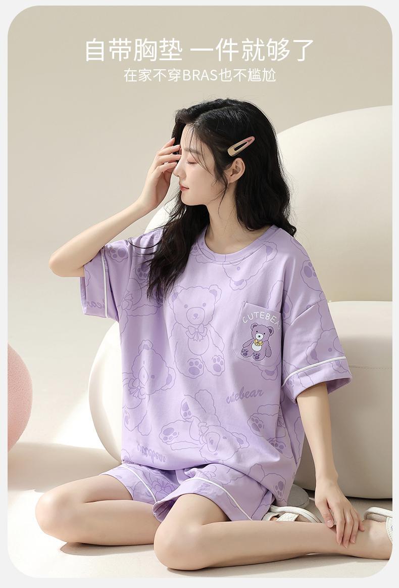 胸パッド付きパジャマ女性夏セット甘い韓国版アニメ学生カジュアル半袖ズボンホームウェアゆるい大きいサイズ