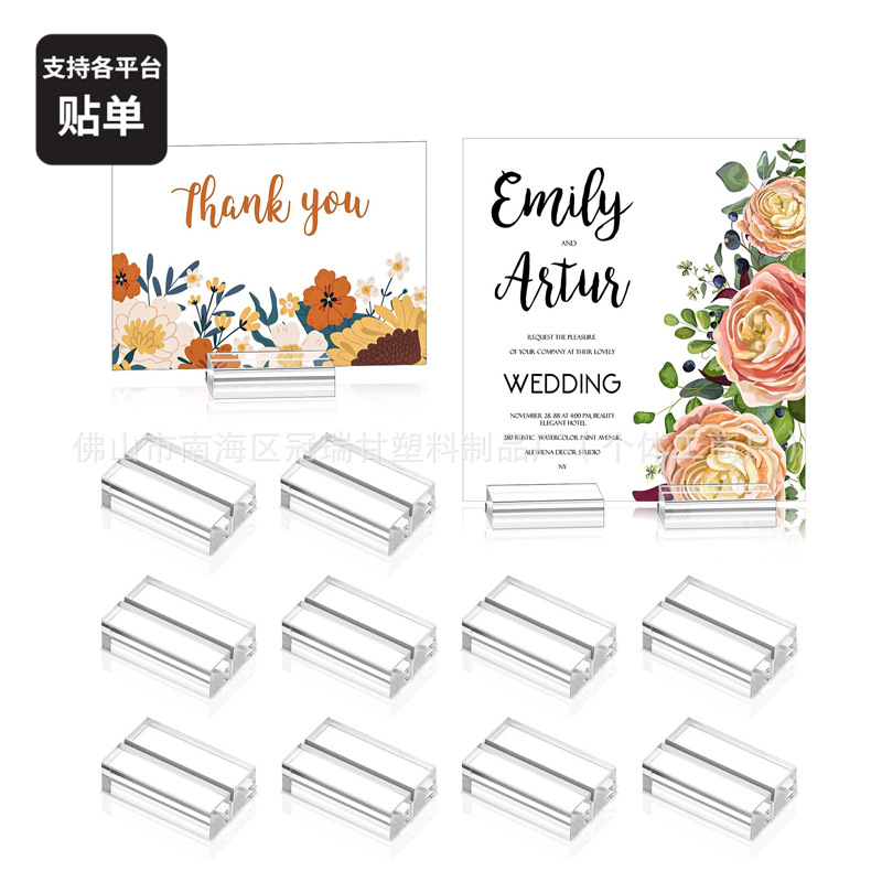 クロスボーダーアクリル透明ベースカードスロットクリップカード固定ブラケットスタンドベースプレート結婚式展示プレート