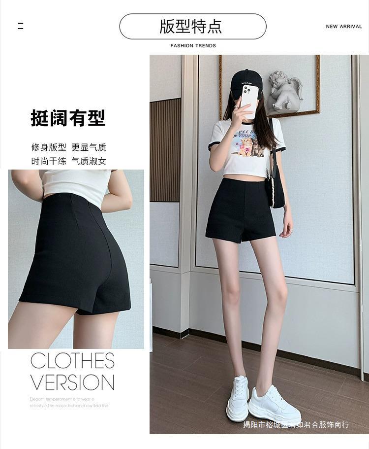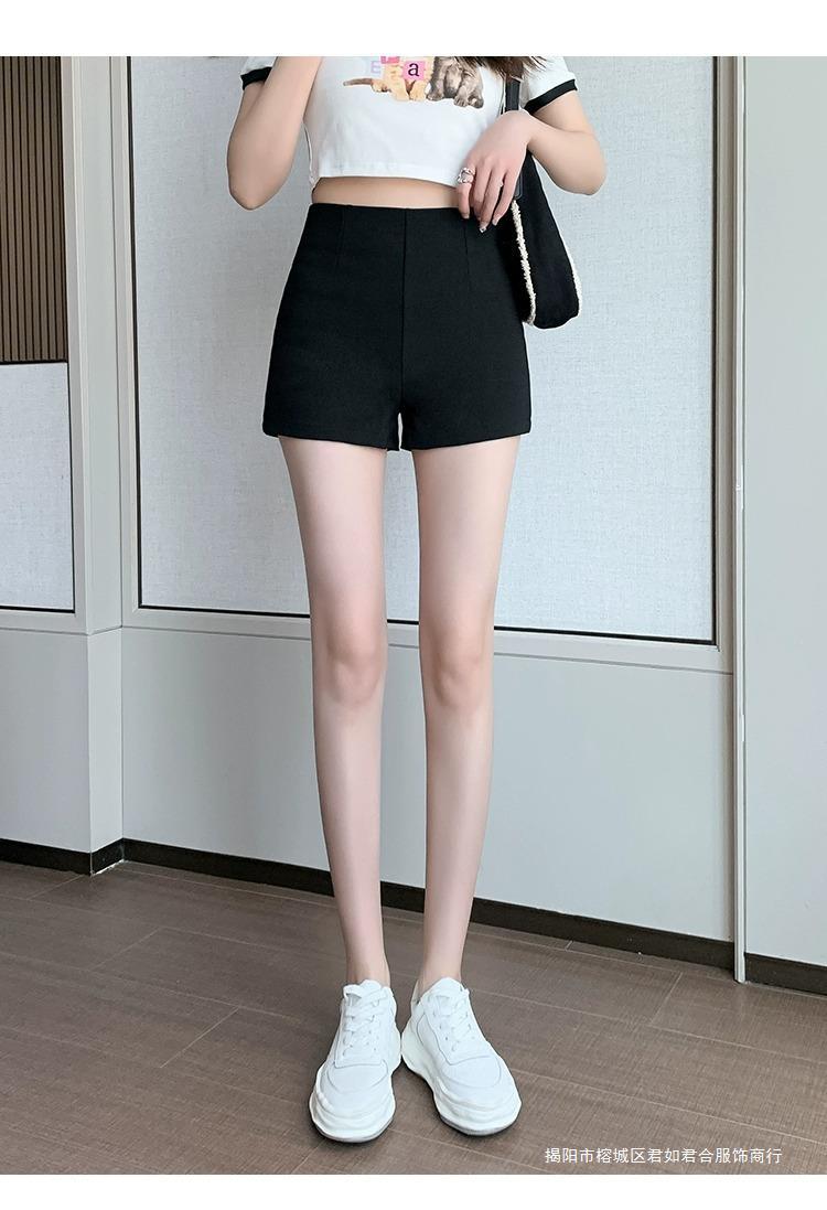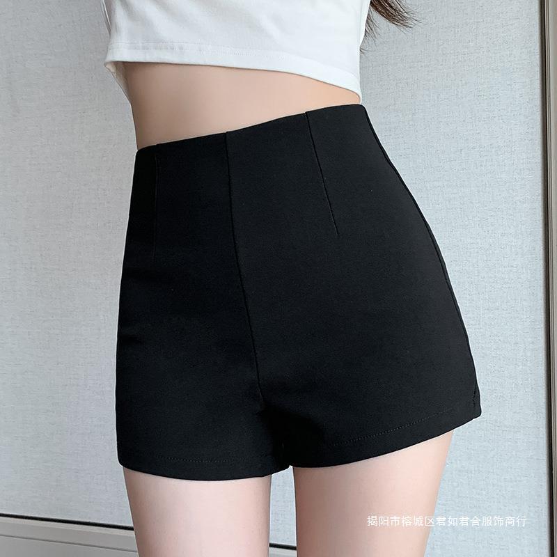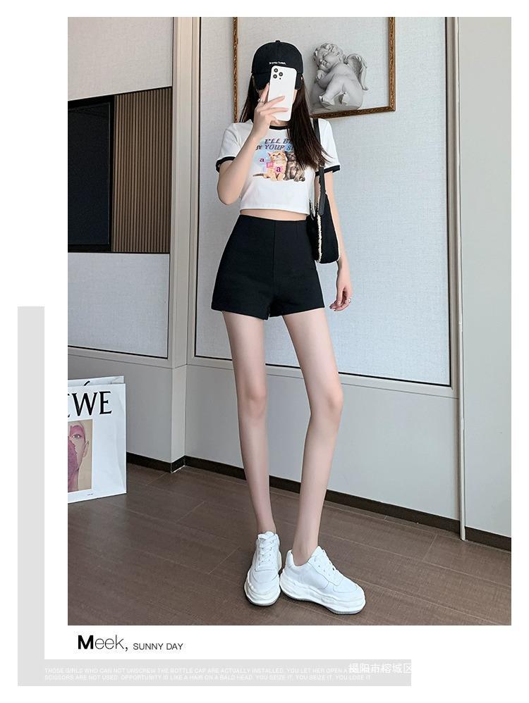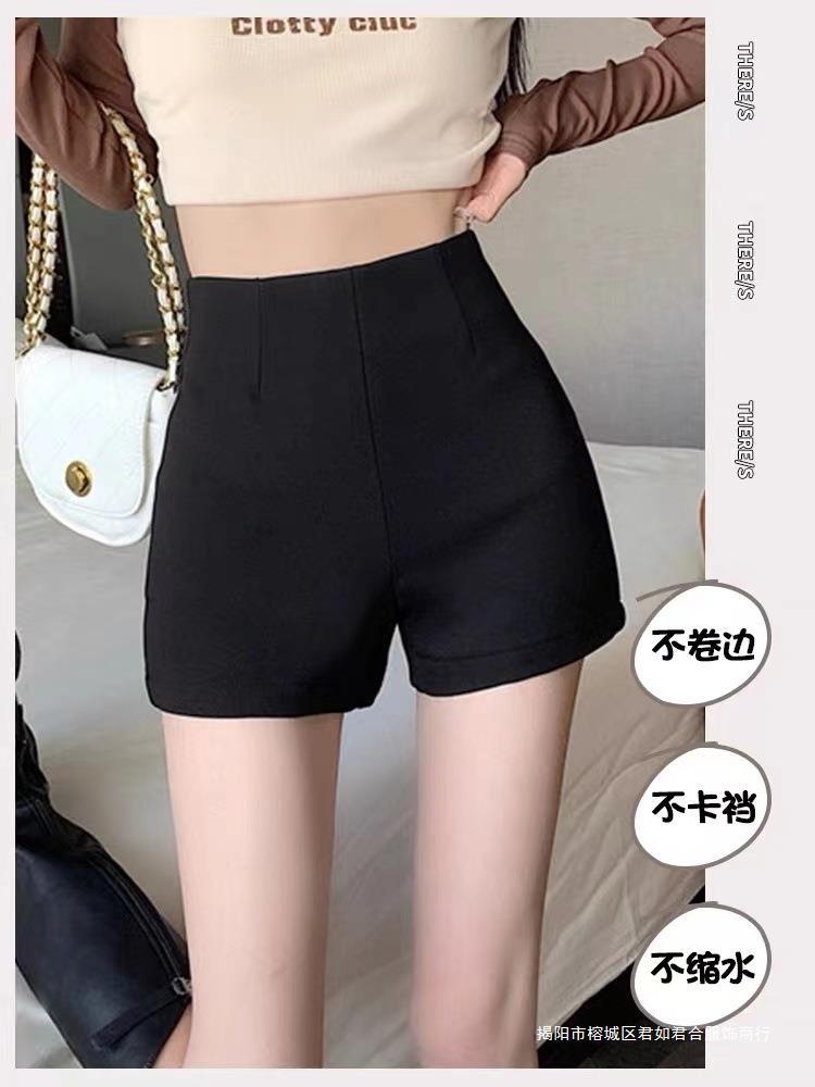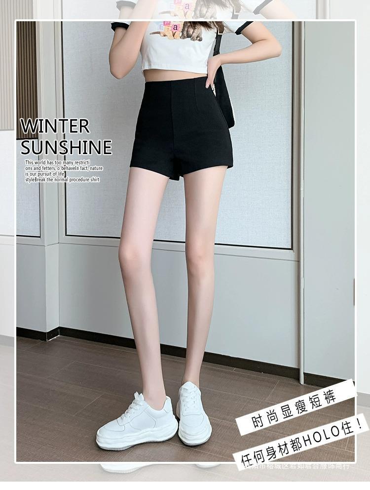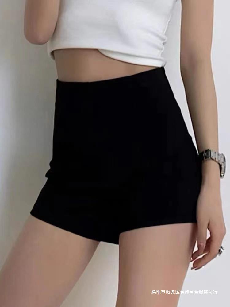 百合ガードル弾力カジュアルパンツ女性2025春の薄いタイプのホットパンツの字のショートパンツの黒い高腰はやせています。