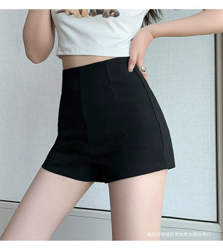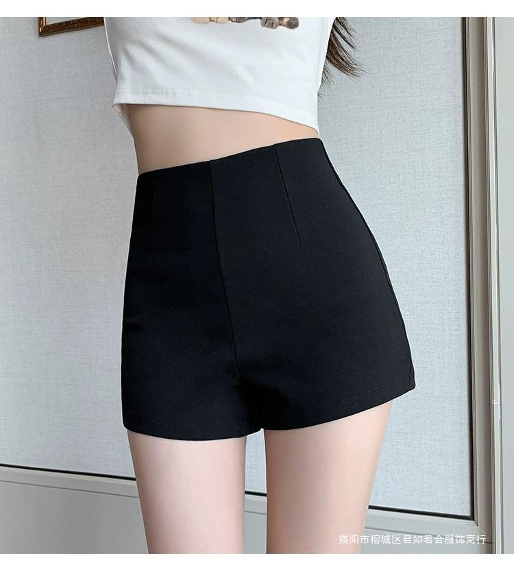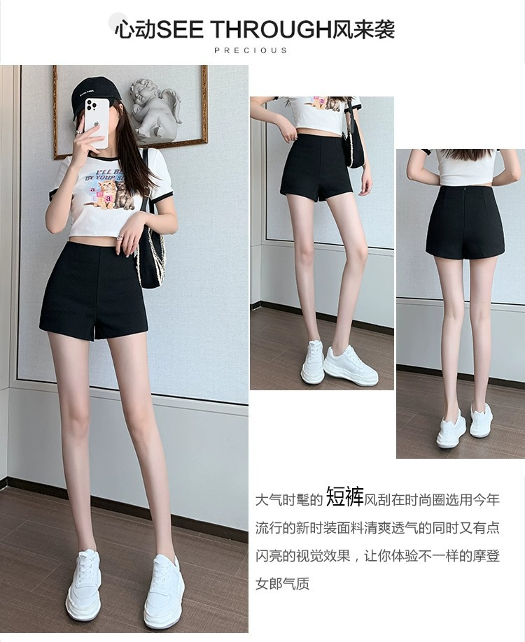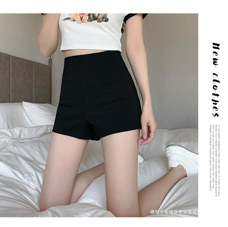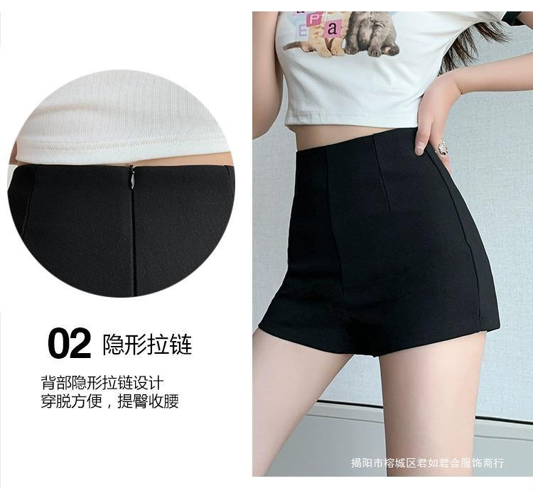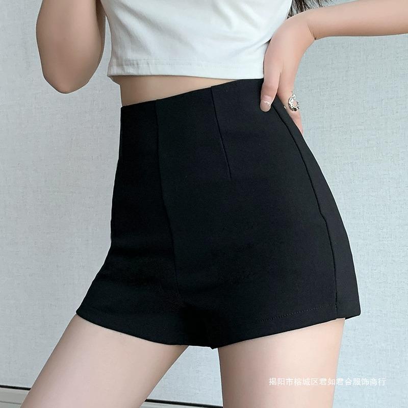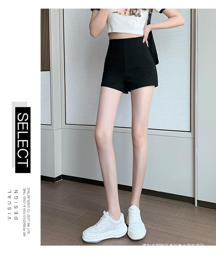 百合ガードル弾力カジュアルパンツ女性2025春の薄いタイプのホットパンツの字のショートパンツの黒い高腰はやせています。