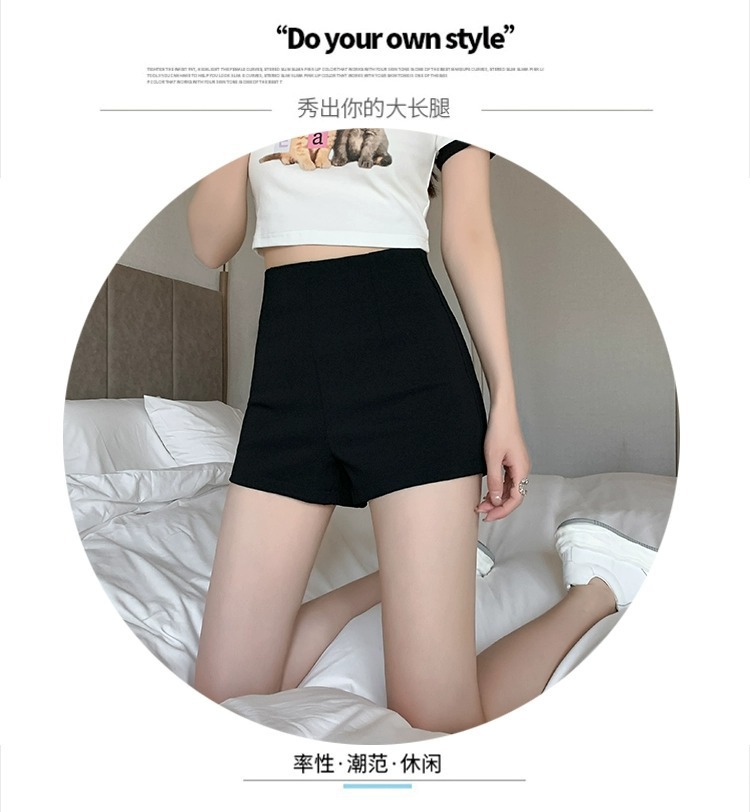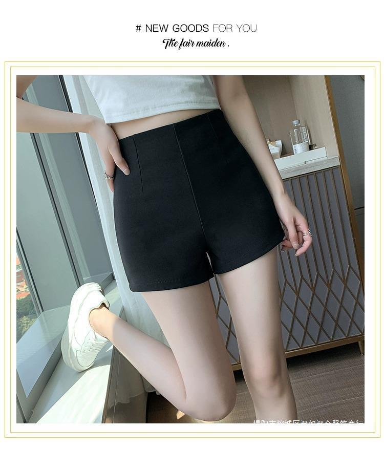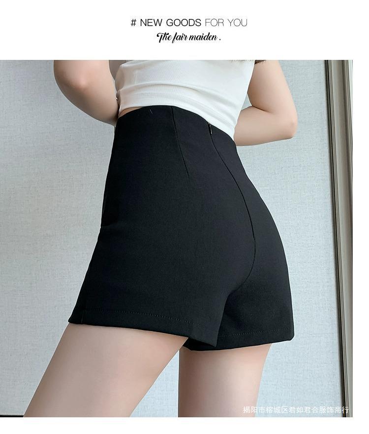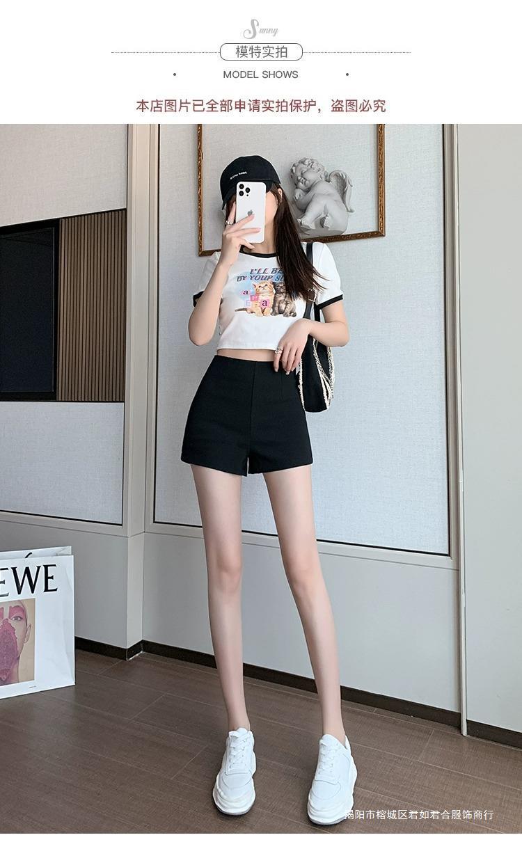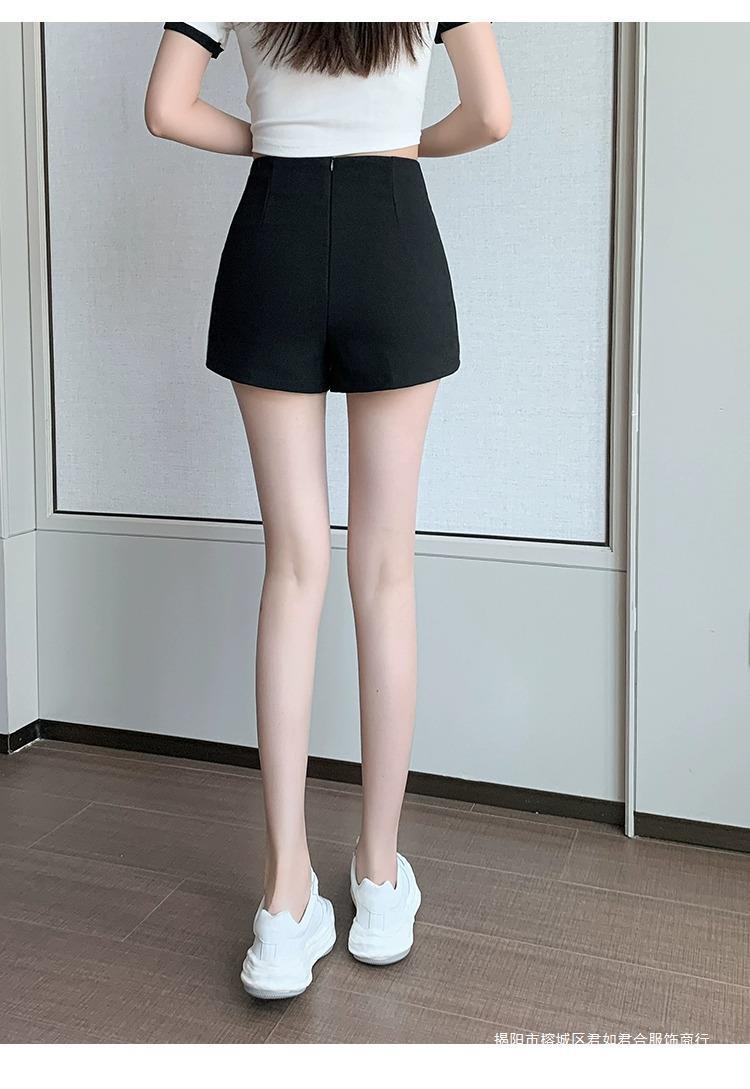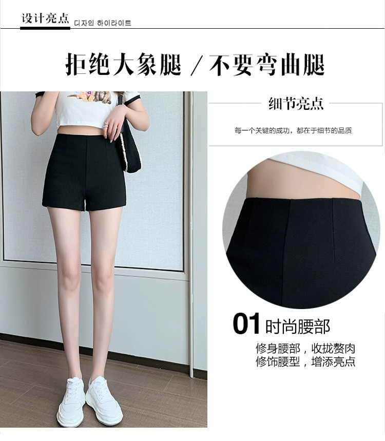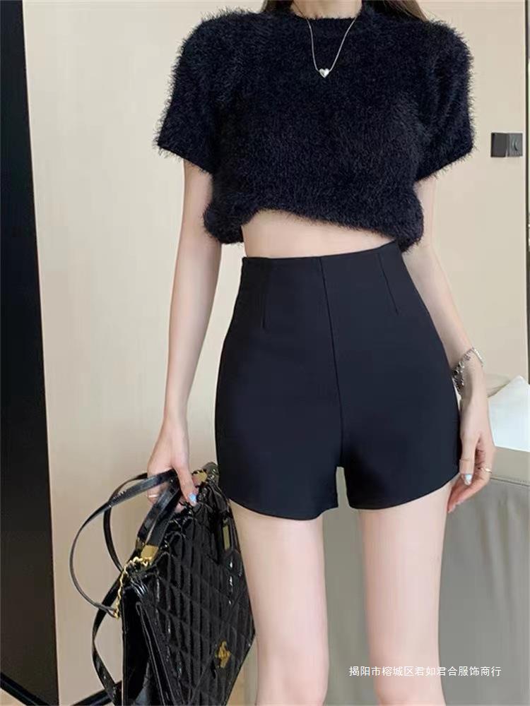 百合ガードル弾力カジュアルパンツ女性2025春の薄いタイプのホットパンツの字のショートパンツの黒い高腰はやせています。