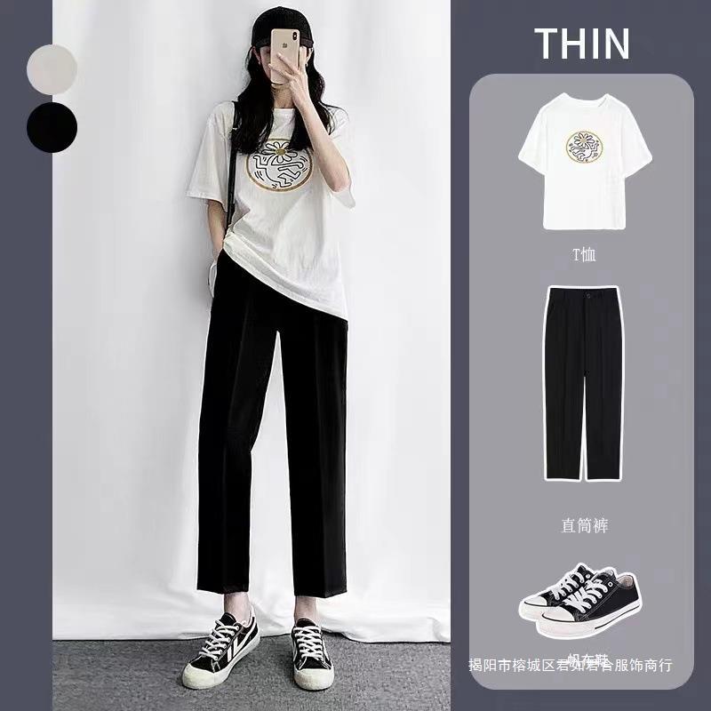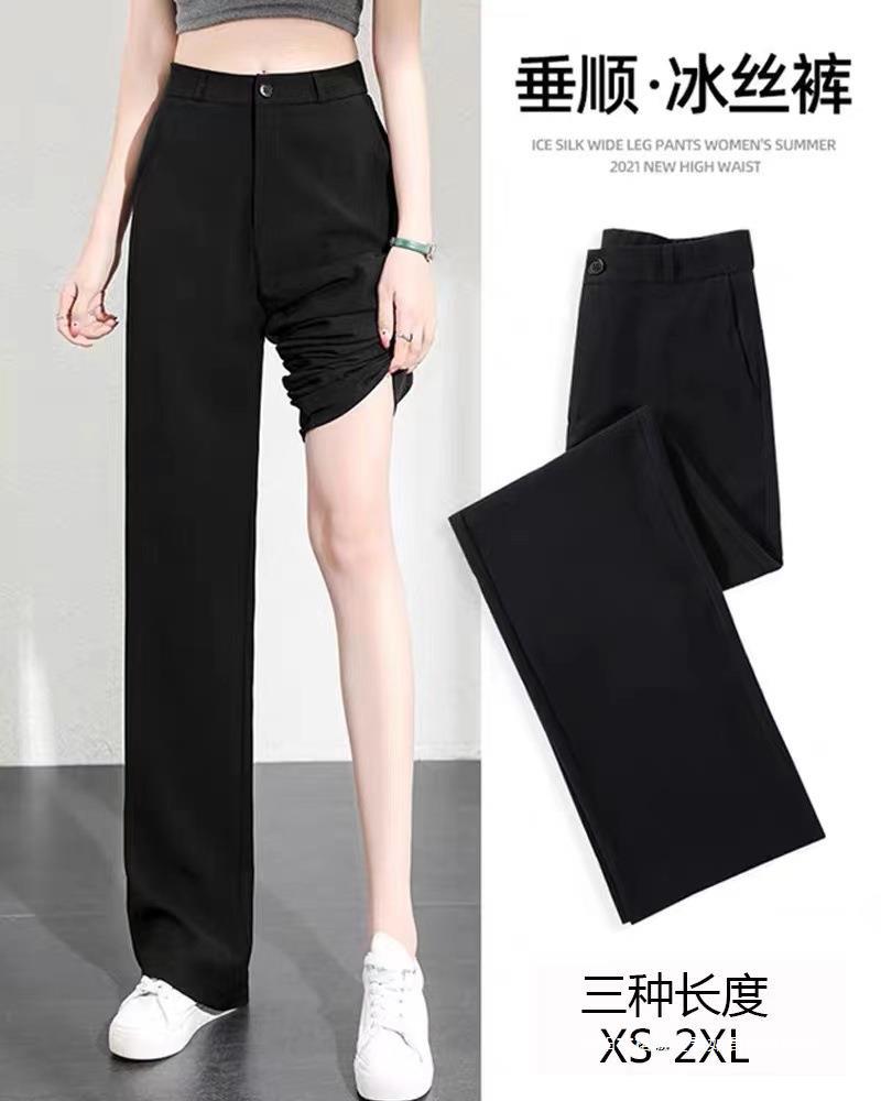 スーツのズボンの女性の春秋2023新型の高級感のタバコの筒の垂れ下がった感じの広足の小さい背の高い腰の黒色のまっすぐな筒のズボン