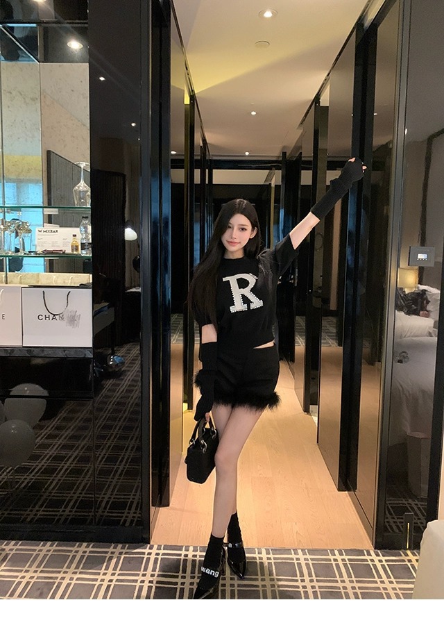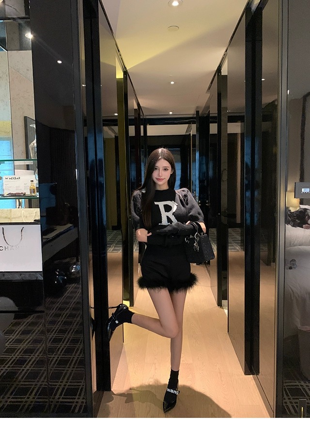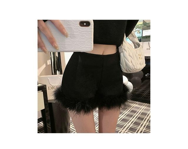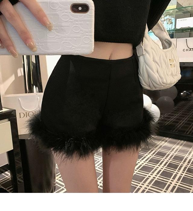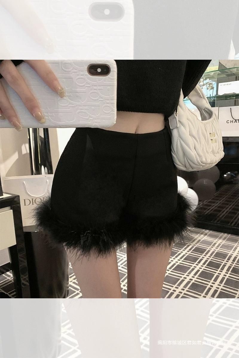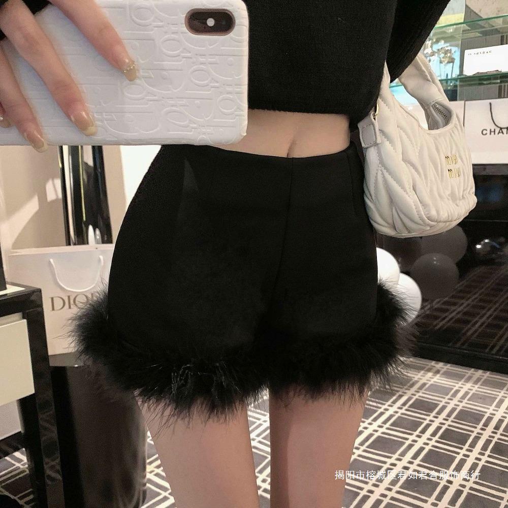 黒い毛とブーツのショートパンツの女性2023新型秋冬の外はハイウエストの小衆a字のズボンを着ています。