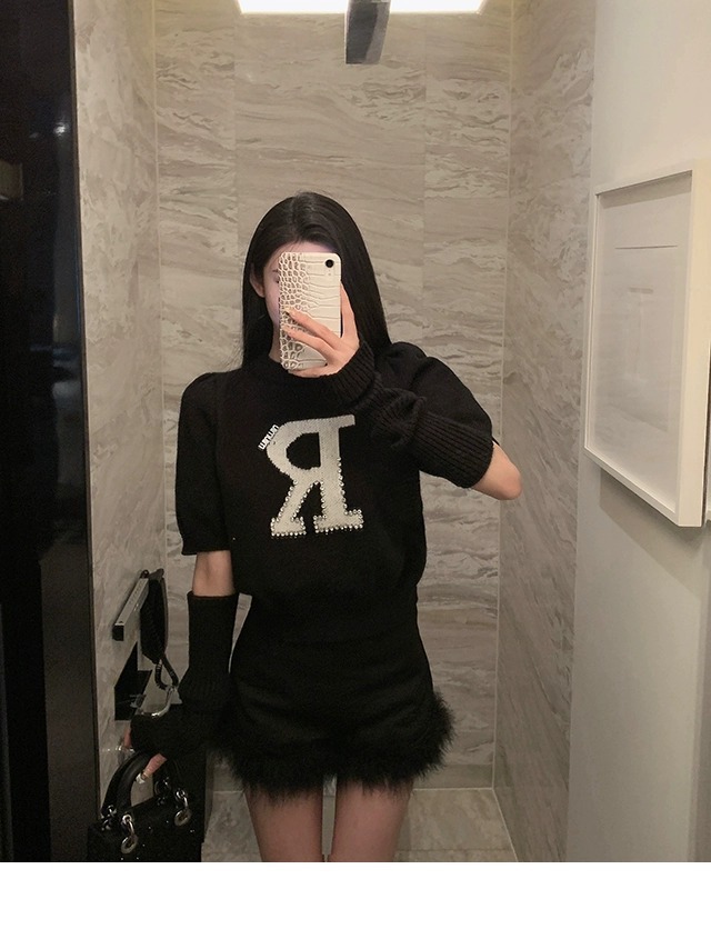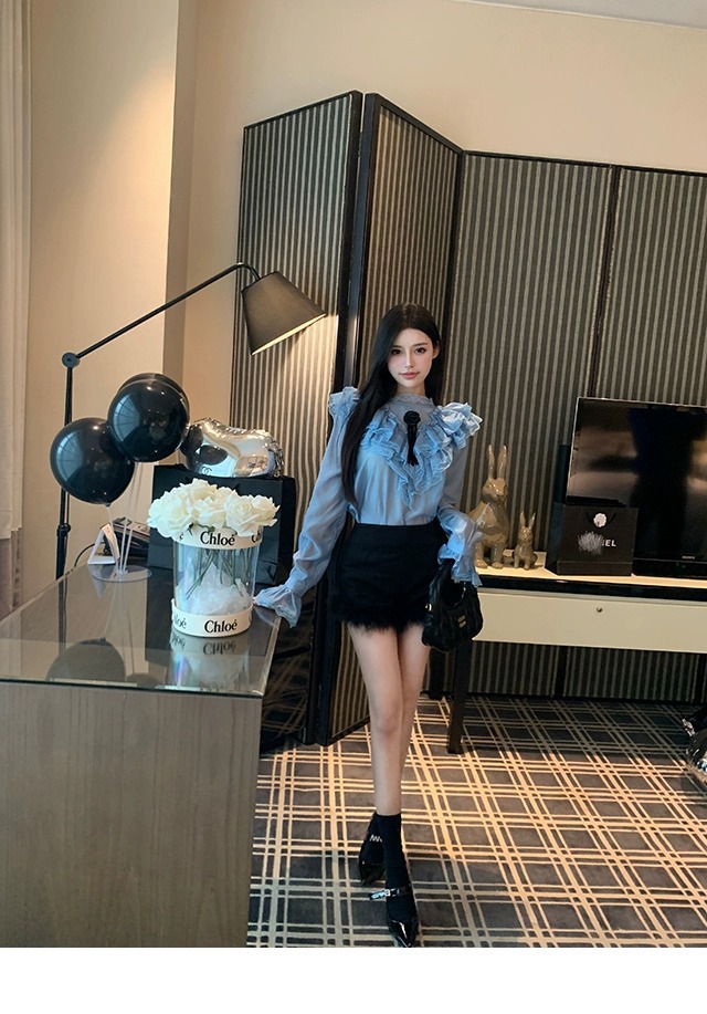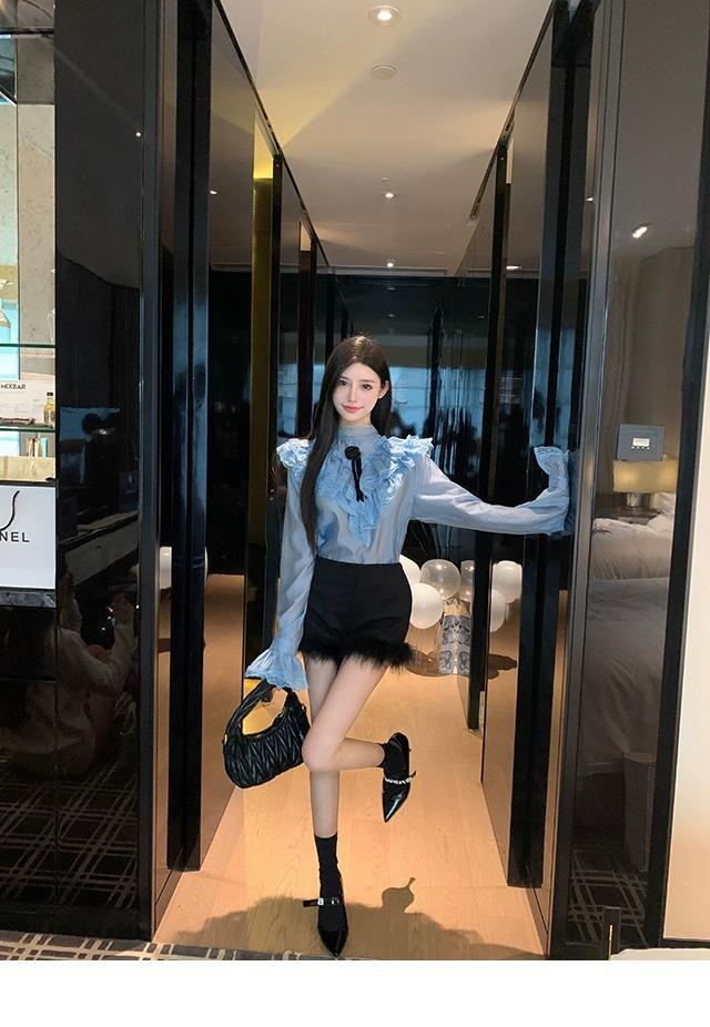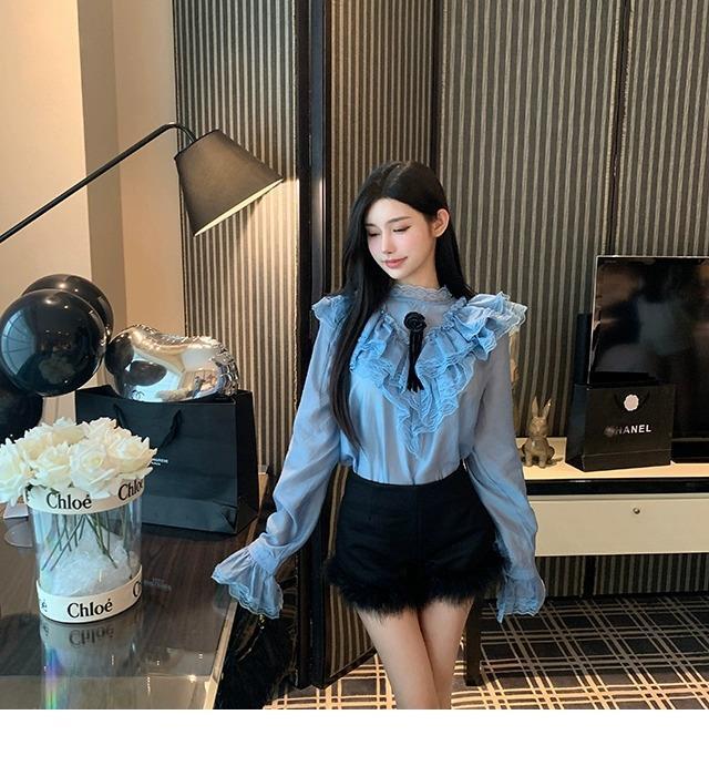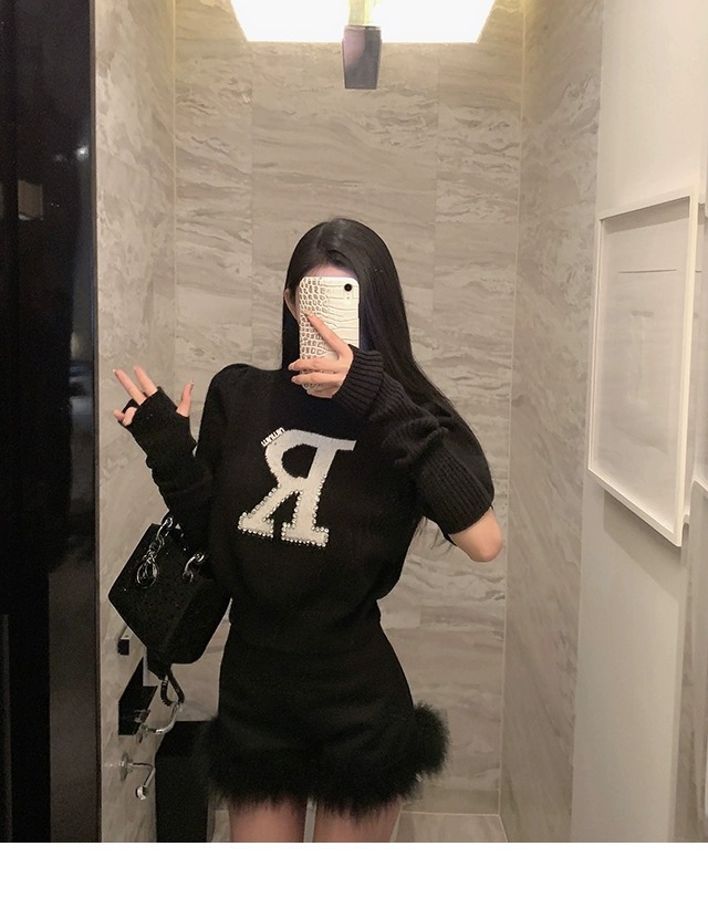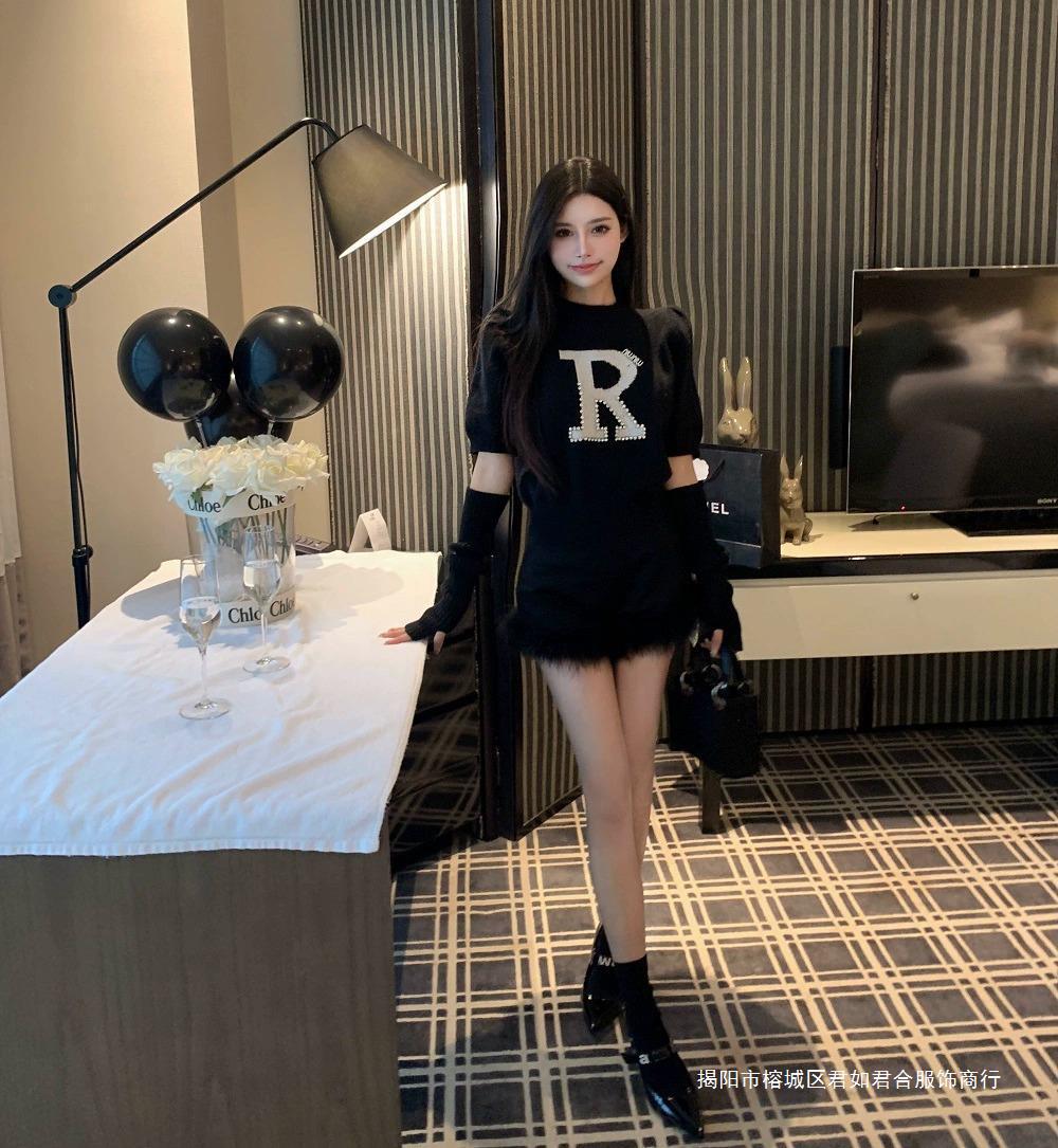 黒い毛とブーツのショートパンツの女性2023新型秋冬の外はハイウエストの小衆a字のズボンを着ています。