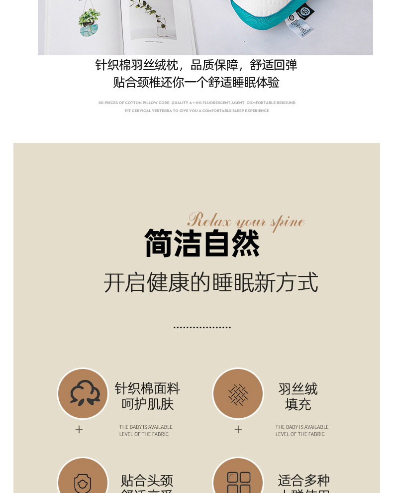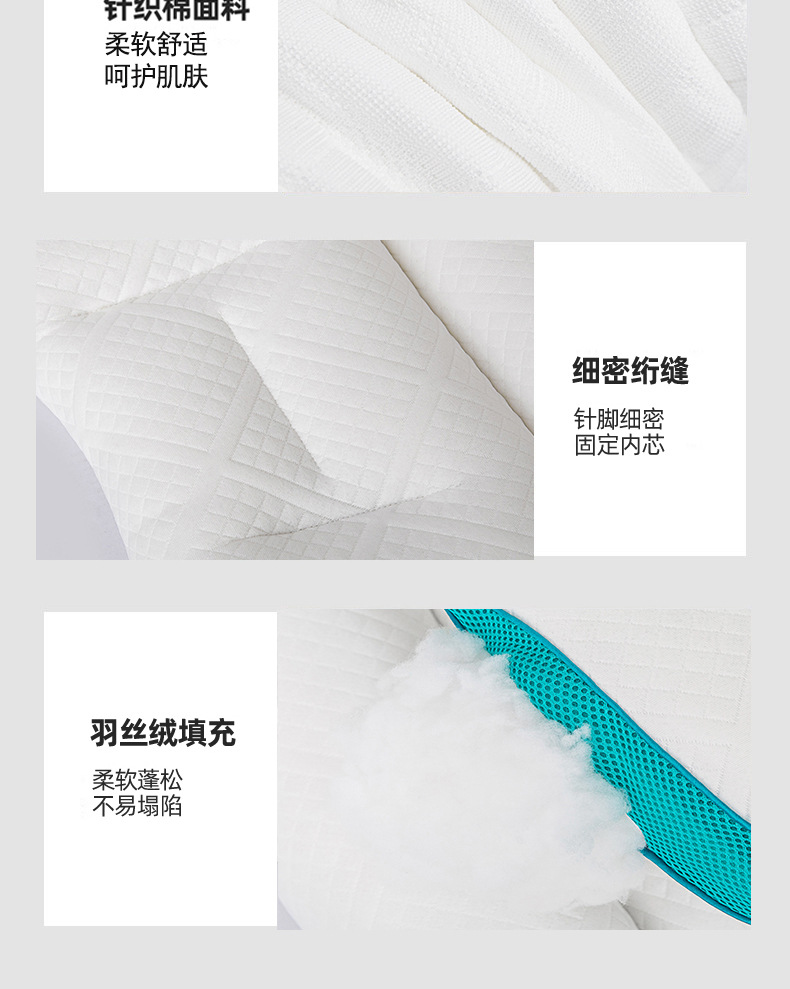 新型立体肌触感ニット羽根ベルベット枕メーカー、母子グレードの柔らかさと反発力のある枕芯を卸売販売