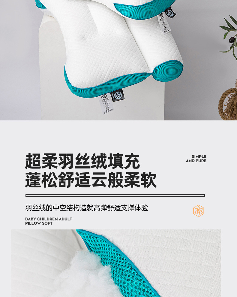 源工場から直接供給される、星形ホテル枕芯、羽毛シルク立体快適枕芯、大人用頸椎保護枕芯
