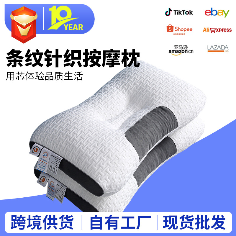 源工場直販、ストライプニットSPAマッサージ枕、ネックピロー、睡眠補助枕芯、家庭用・寮用枕