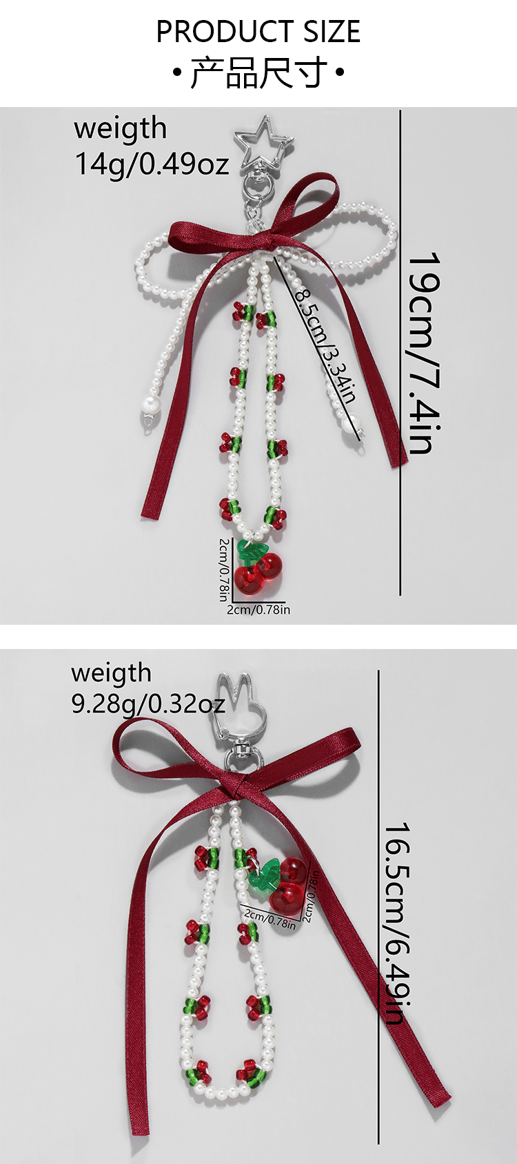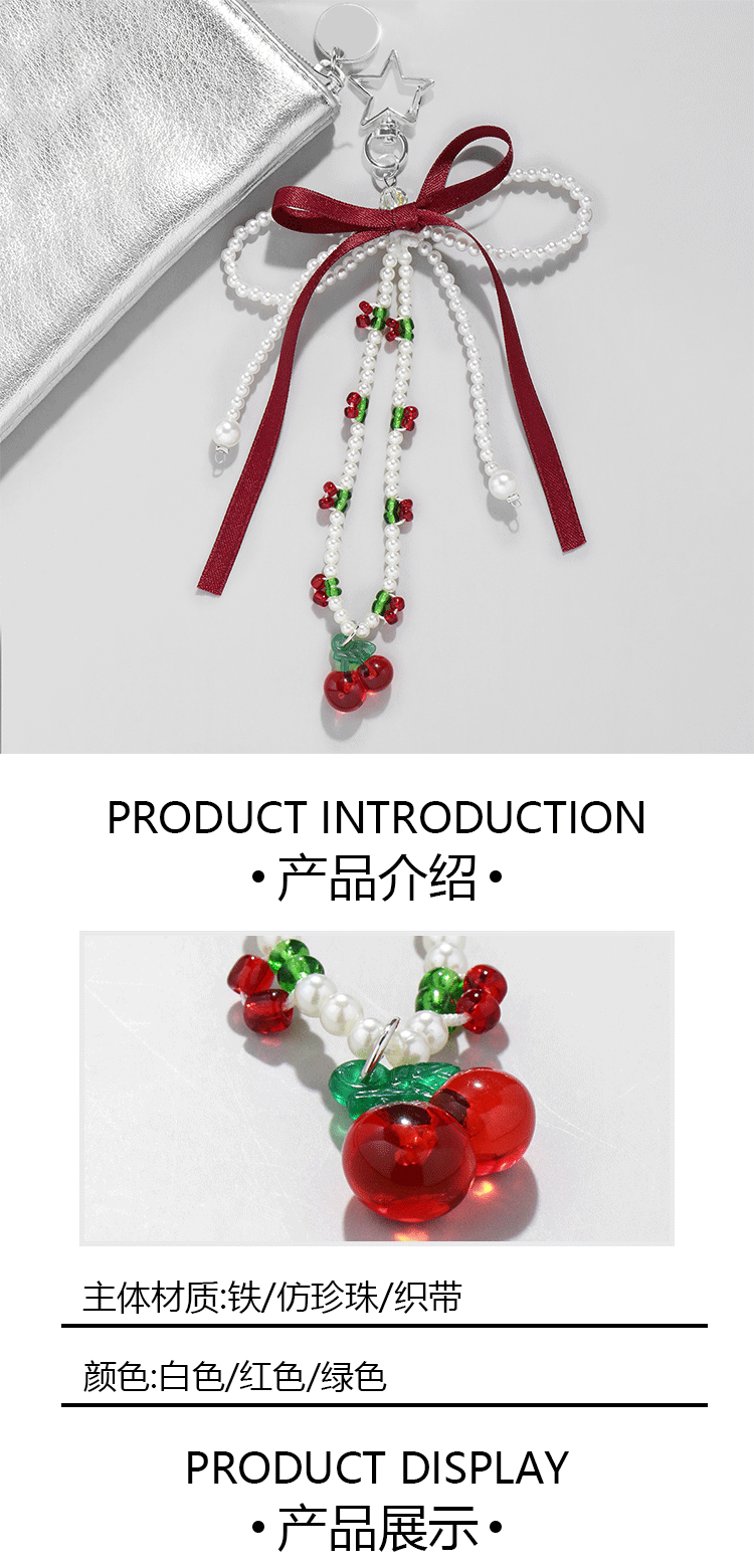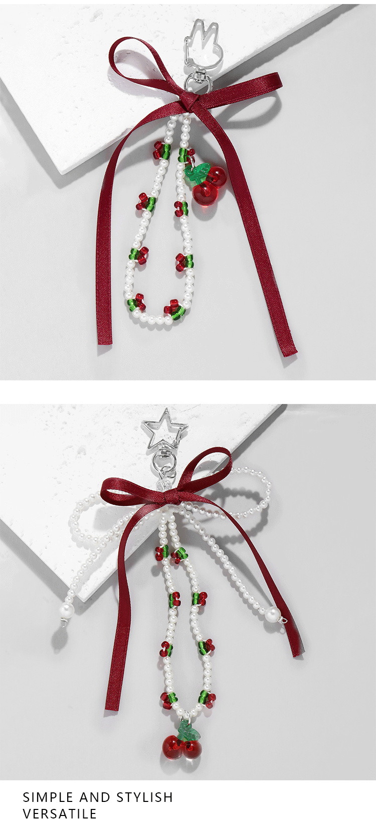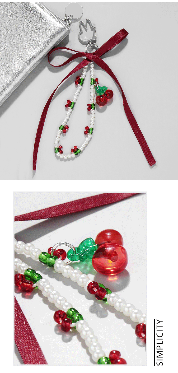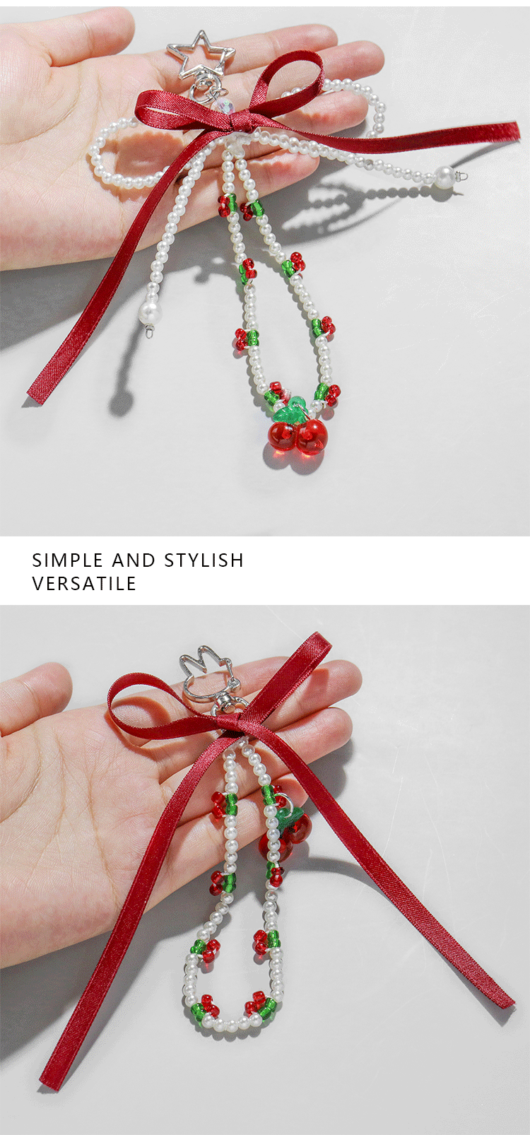 新商品iu系風清新甘美高颜値ビーズ蝶結び樹脂細閃毛面さくらんぼDIYキーホルダー