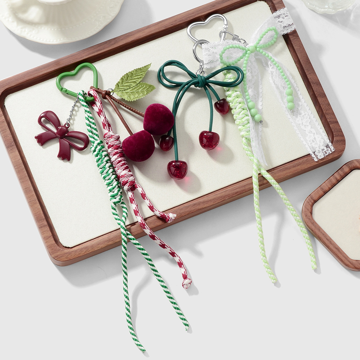 新しい y2k パーソナライズされたシンプルでハイエンドの黒と白のレースのリボン模擬チェリーペンダント DIY バッグペンダント