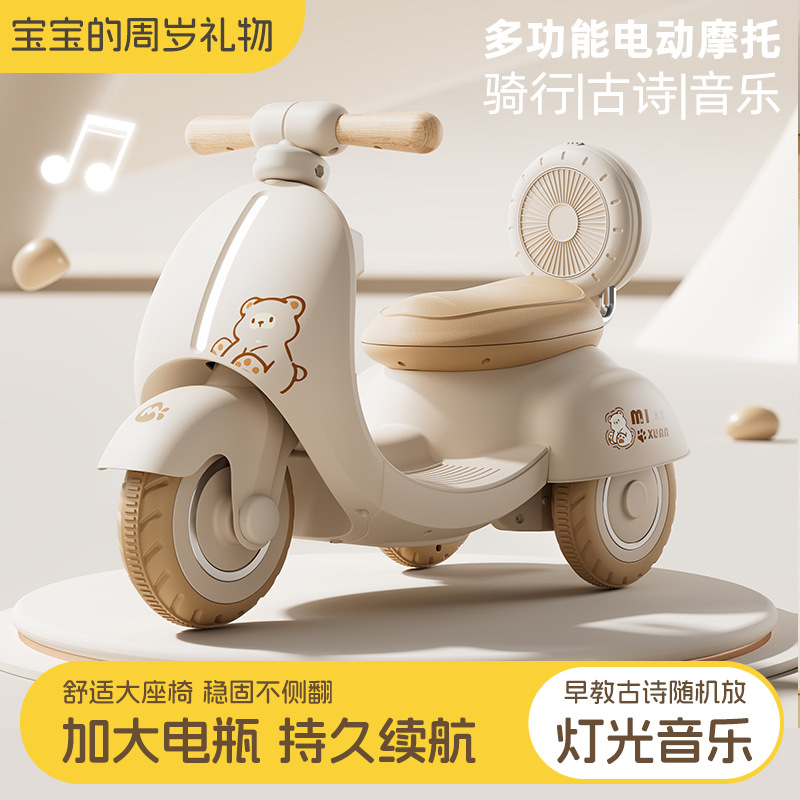 儿童早教电动摩托车三轮车男女宝宝可坐木兰车萌趣遥控灯光玩具车