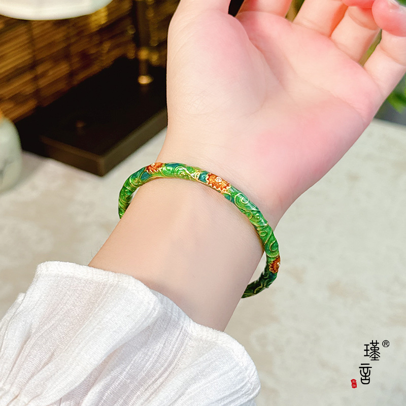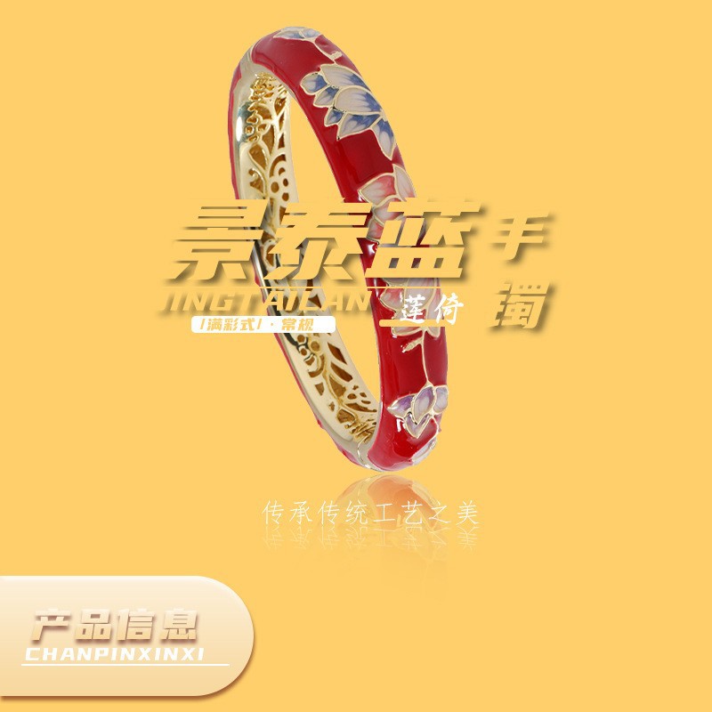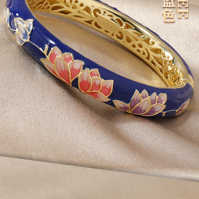 新型北京景泰藍ブレスレット蓮レトロエナメルカラーオープンファッションブレスレット国潮手飾り故宮同金