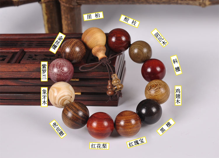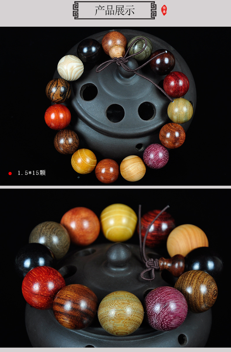 そろばん玉手串仏珠木串緑檀紫光檀黄花梨木のブレスレット