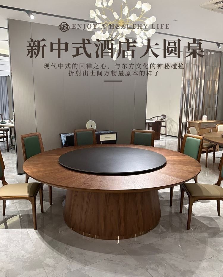 新しい中国風ホテル大型ラウンドテーブル手動電気ダイニングテーブル無垢材ロックプレート付きホテルクラブホームダイニングテーブル