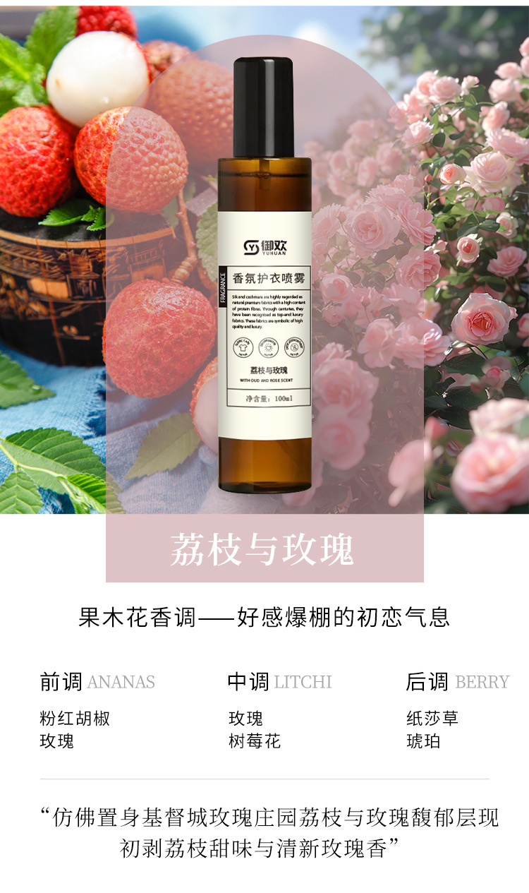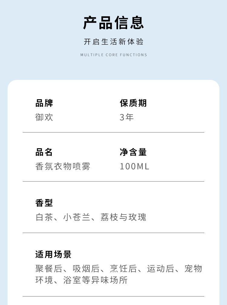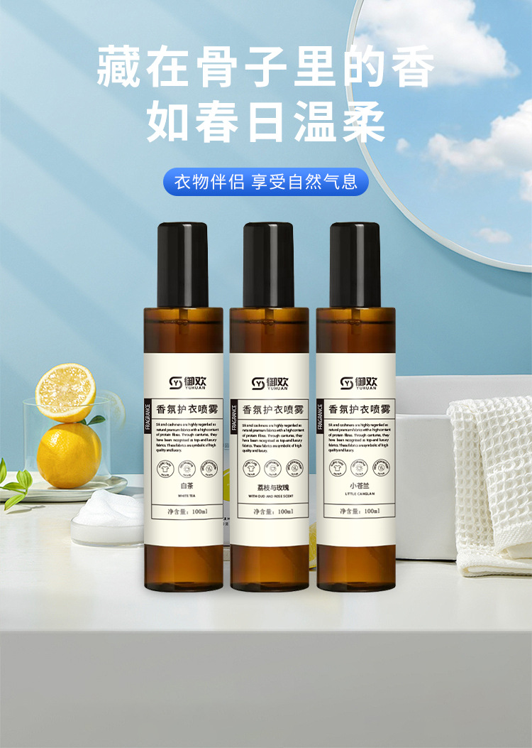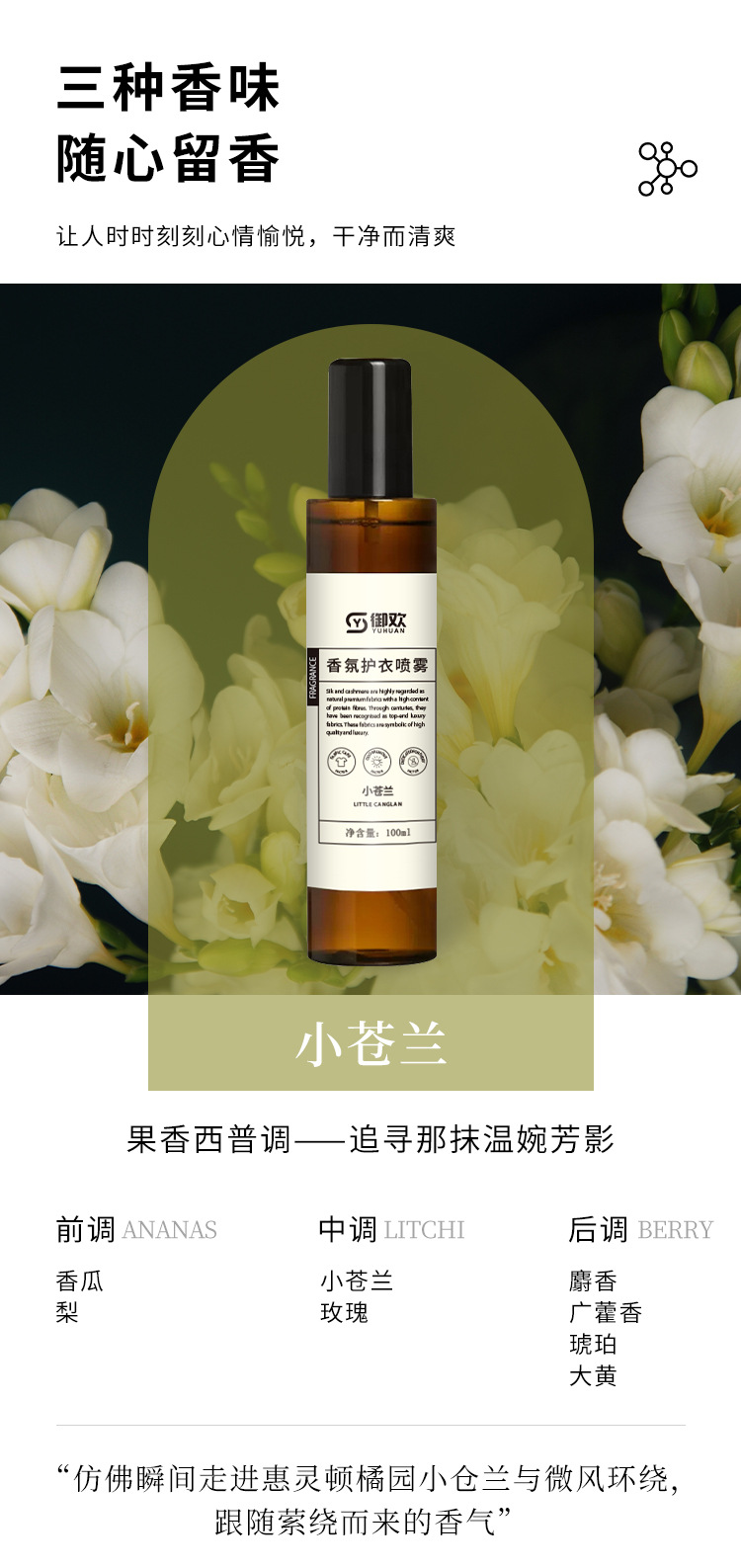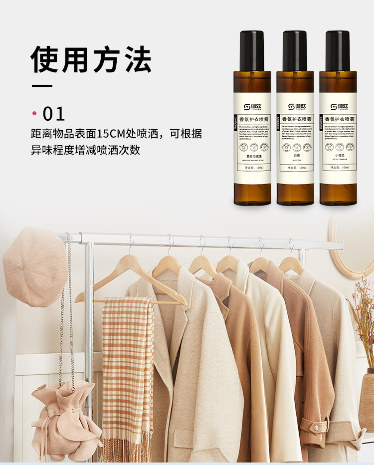衣物香氛护衣除臭喷雾持久留香衣物免洗防静电消毒抑菌除螨柔顺剂
