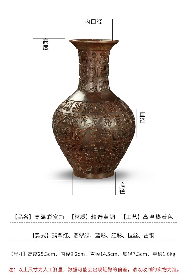 新中国式純真鍮花瓶生け花観賞瓶家庭用室内生花瓶仏前観音菩薩浄水筒百福