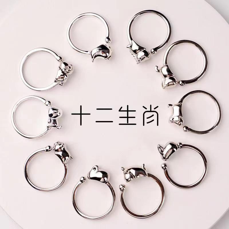S925銀新商品本命十二生肖指輪男女戒開口伸縮指輪レトロ模造泰銀通用モデル