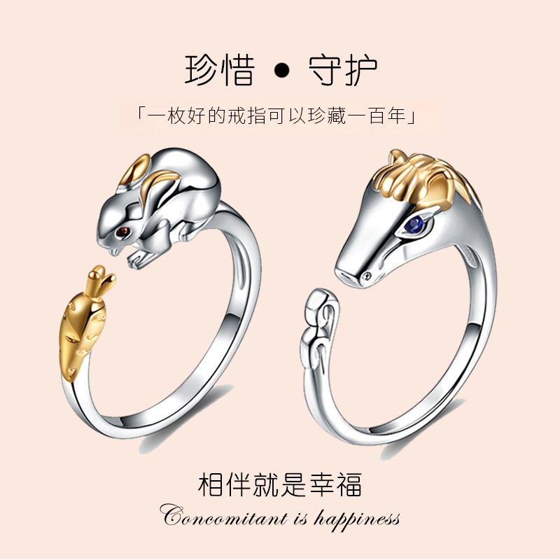 本命年十二生肖個性オリジナルデザイン指輪の開口部は小清新で甘い七夕プレゼントを調節できる