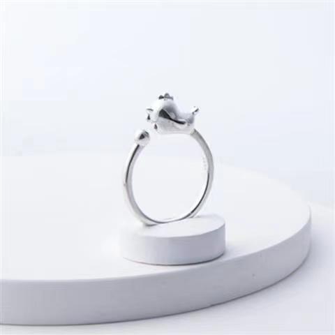 ガジュマルの木の下のS925銀の十二生肖の指輪の女性のオリジナルのデザインの素の輪のミニの生き生きとしている個性の口の指輪の新しい