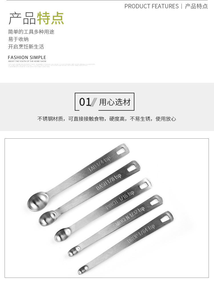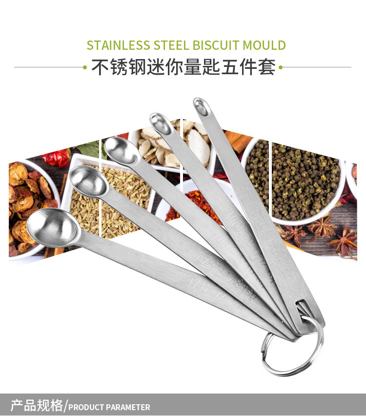 ステンレスミニスプーン5点セットキッチン調味量スプーン測定セット焙煎ツール粉類トランペットスプーン