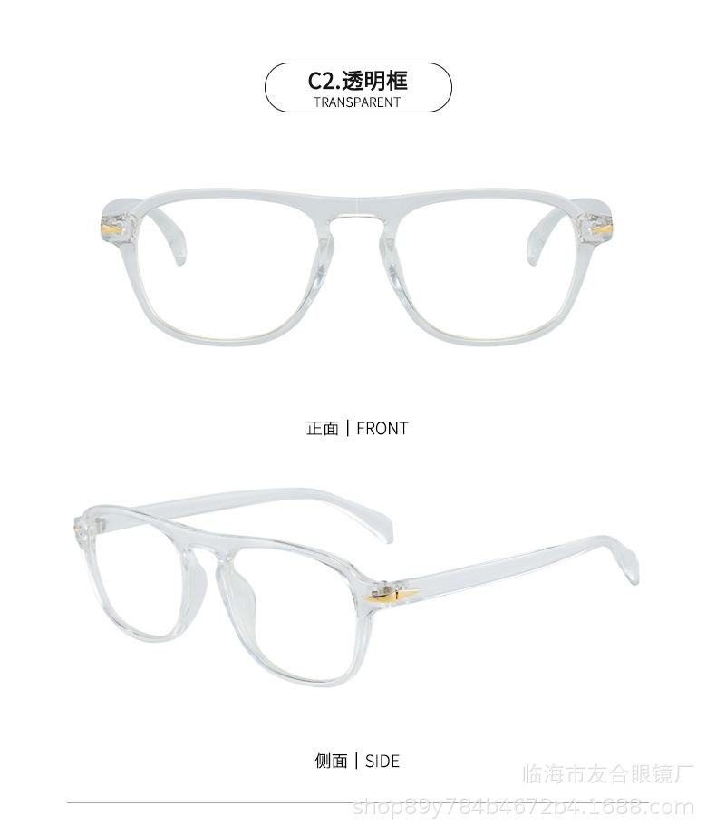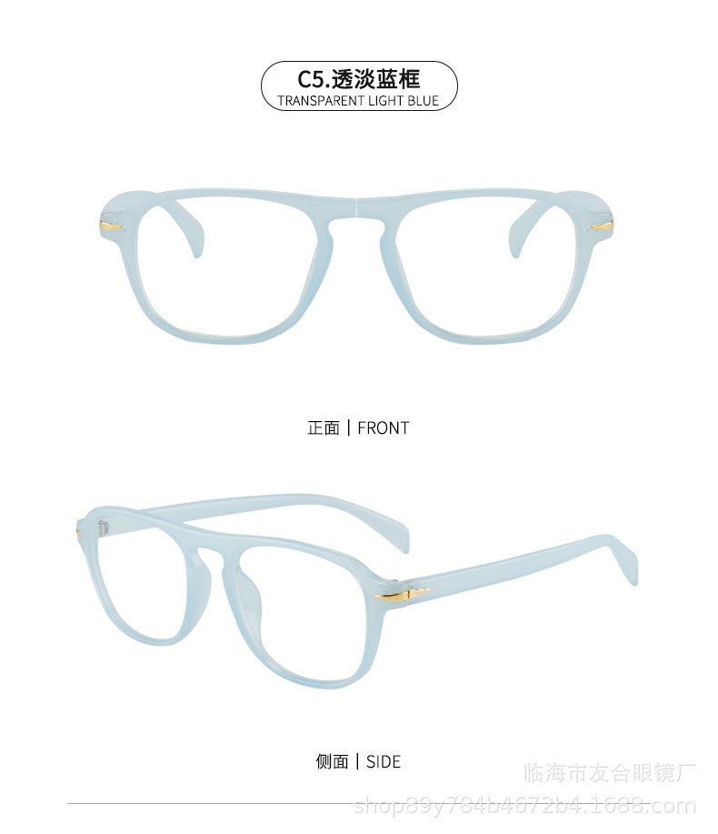 欧米のファッションの双梁のヒキガエルの金の青い光のメガネの新型の復古の四角の枠のサングラスの男女は近視の鏡のフレームを配合します。
