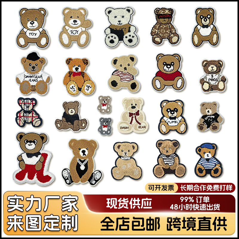 カスタム布製ステッカー漫画風クマの頭タオル刺繍粘着パッチシェニールパッチかわいいクマ刺繍パッチ