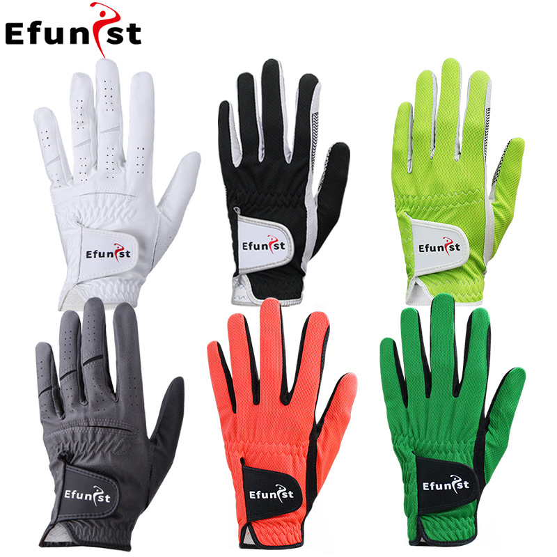 Efunist ゴルフグローブ メンズ 左右兼用 シングル通気性メッシュ 滑り止め粒子弾性手袋付き
