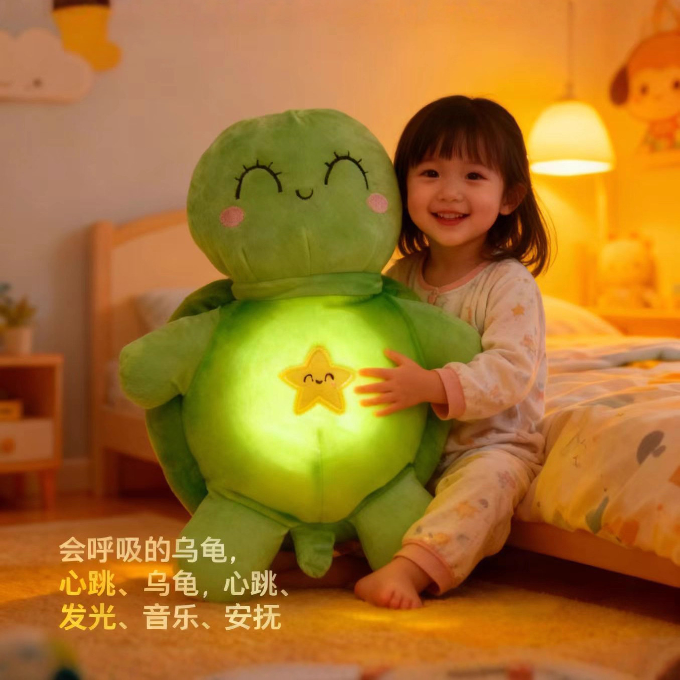外贸跨境爆品乌龟呼吸安抚呼吸声光音乐毛绒玩具陪伴哄睡呼吸熊
