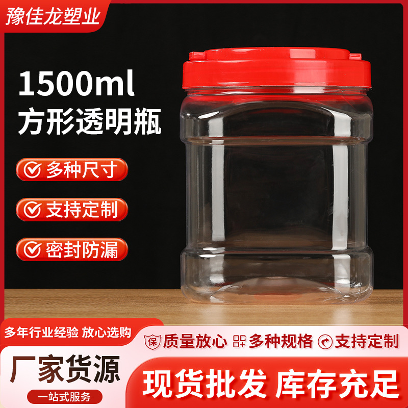 霉豆腐罐子2斤瓶1500ml方瓶加厚透明pet食品级带盖酱菜辣椒密封罐