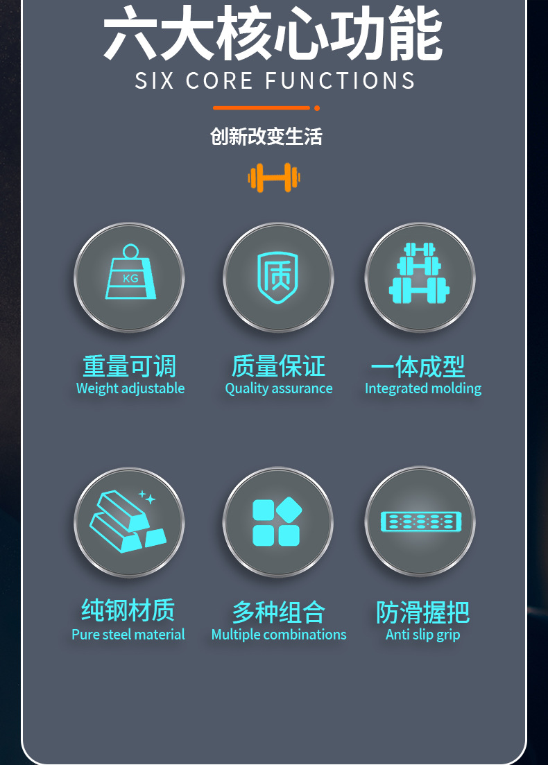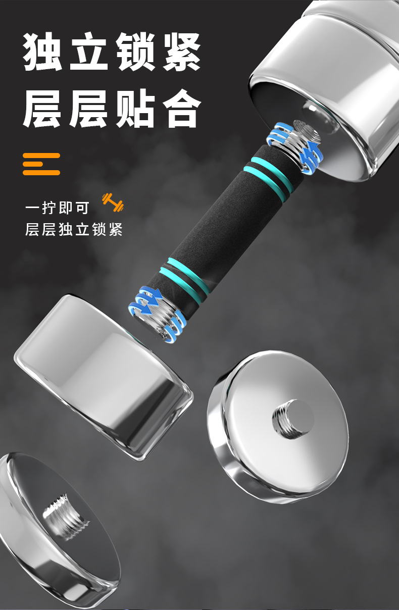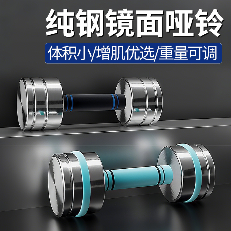镜面电镀纯钢哑铃可调节多功能家用健身可组杠铃厂家一件起批