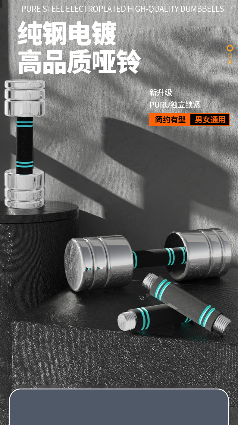 纯钢电镀哑铃实心钢铁哑铃家用男士健身器材杠铃套装重量可拆卸