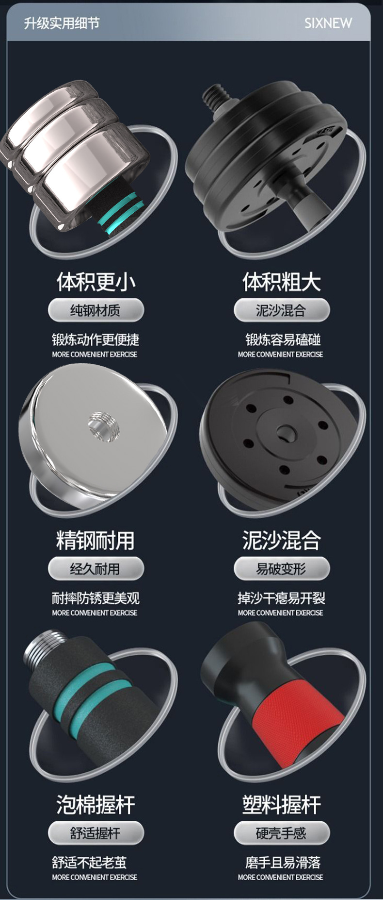 純鋼中実メッキ取り外し可能ダンベルフィットネス腕筋多機能バーベル工場瑕疵処理ゴムなし