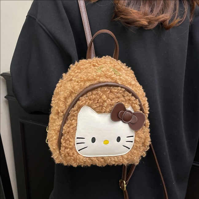 漫画のリボン付き小さな羊毛のぬいぐるみバックパック、女性用のかわいいミニバックパック、ファッショナブルで甘い動物柄のスクエアバッグ