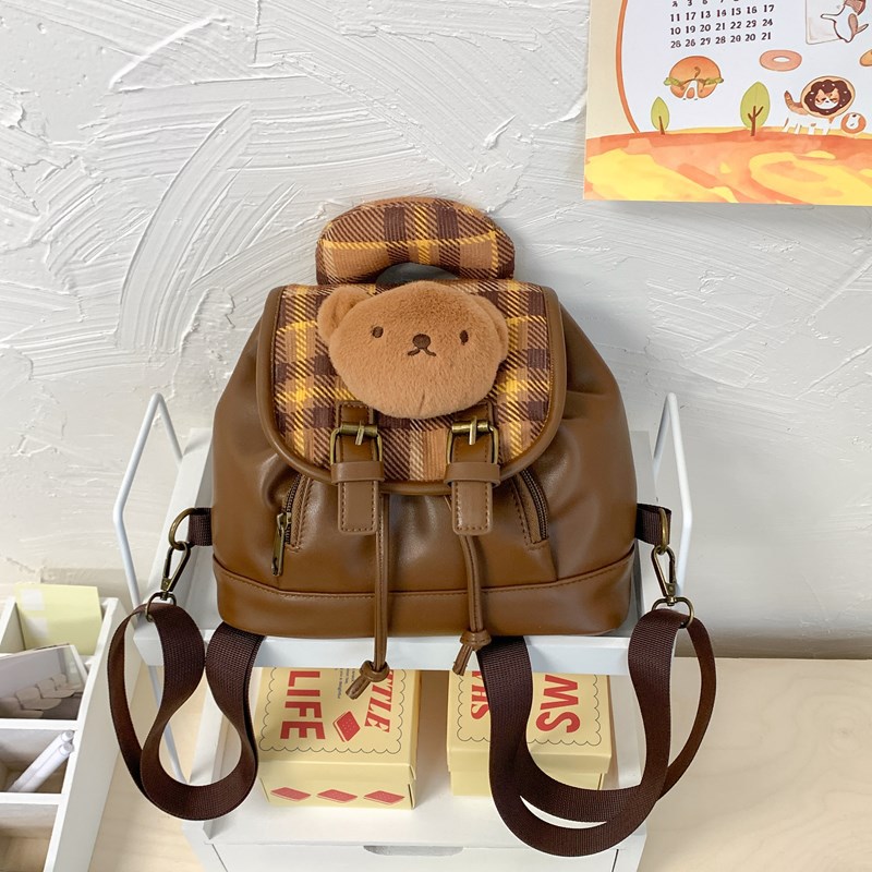 高颜值小熊迷你双肩包女简约休闲轻便旅行韩版小众设计格子小背包