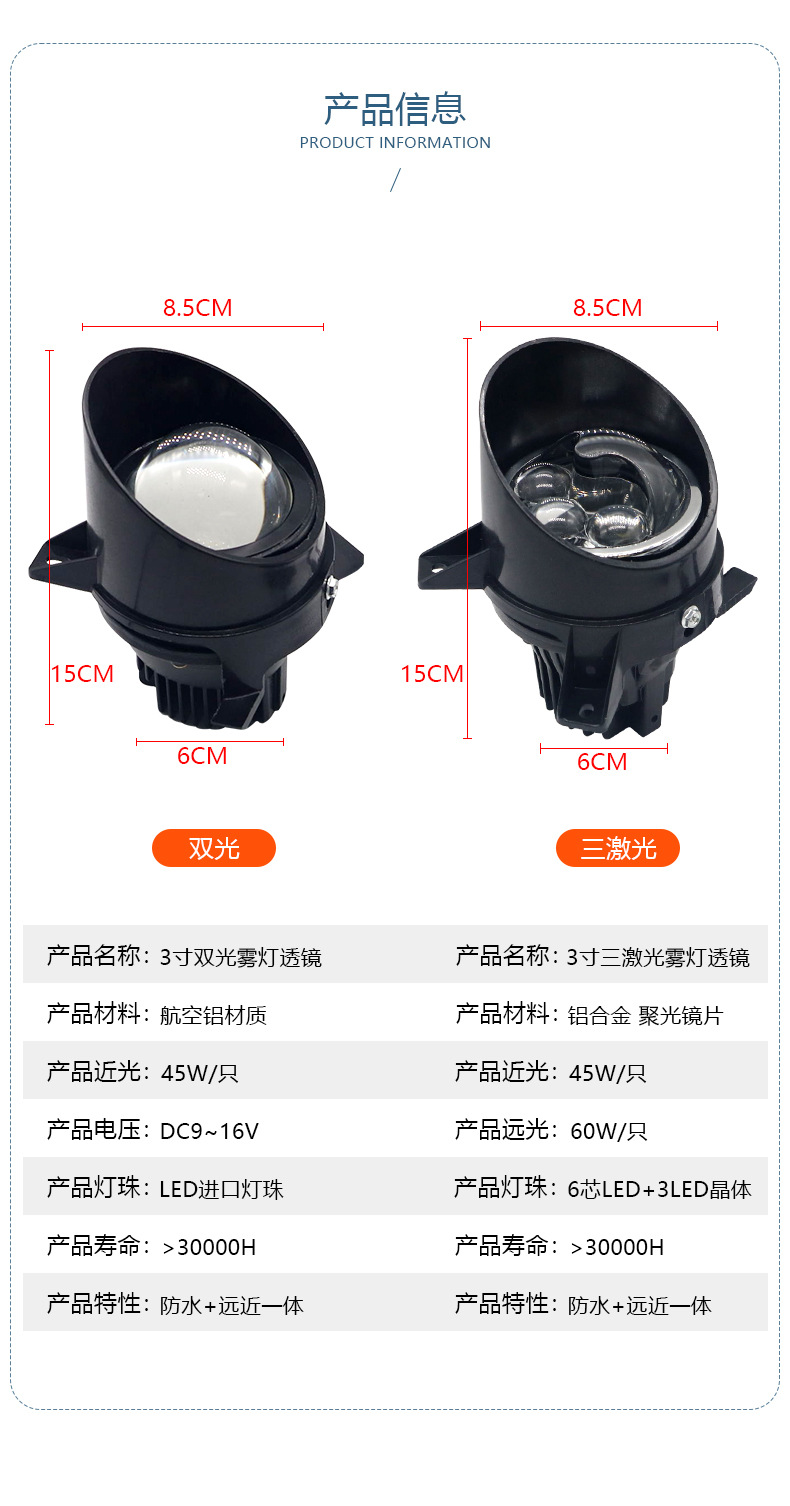 専用江西いすゞ ライダース チェンリン ディマ トランジット ユシェン リンタオ 3inch フロント LED ダブルフォーカスレンズ フォグランプ