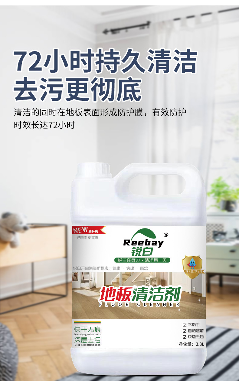 跨境木地板清洁剂强力去油污瓷砖不留印多功能增亮家用地板清洁液