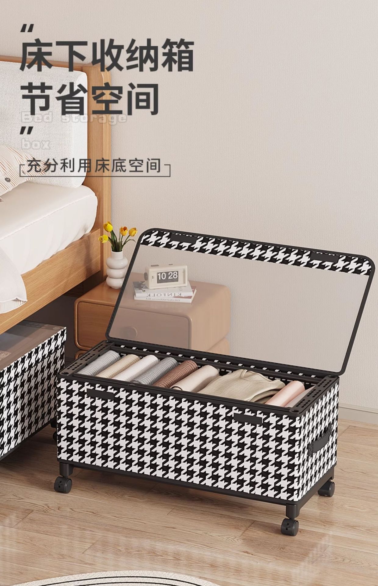 ベッド底収納ボックス引出式フラットプーリー付ベッド下整理箱衣類ズボン収納神器置物箱