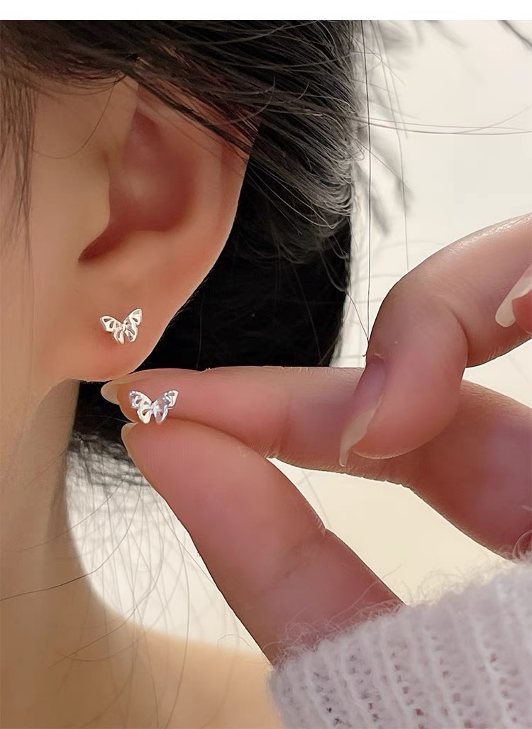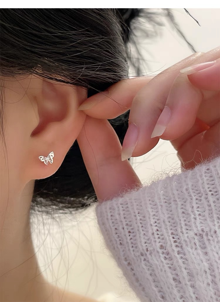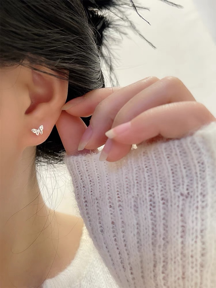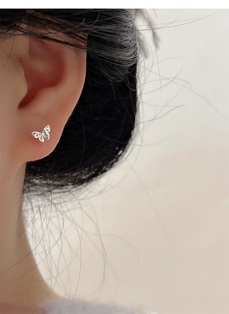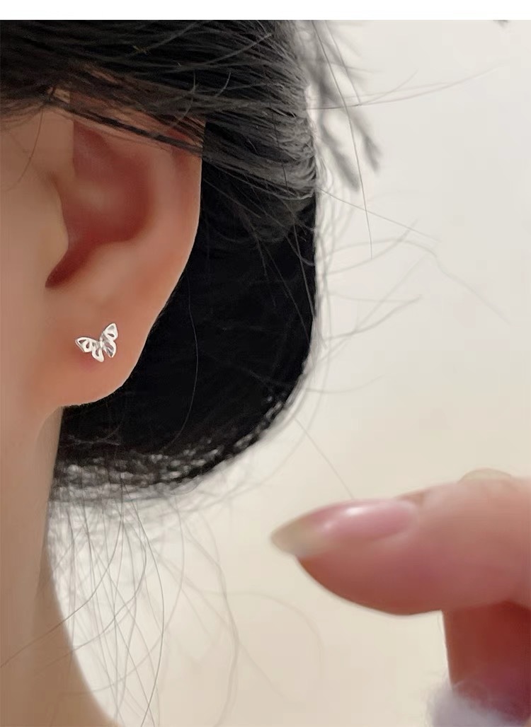 喜飾銀匠925純銀透かし彫り蝶耳釘シンプルで清新な個性耳骨釘甘くて小さくて高級感があります。