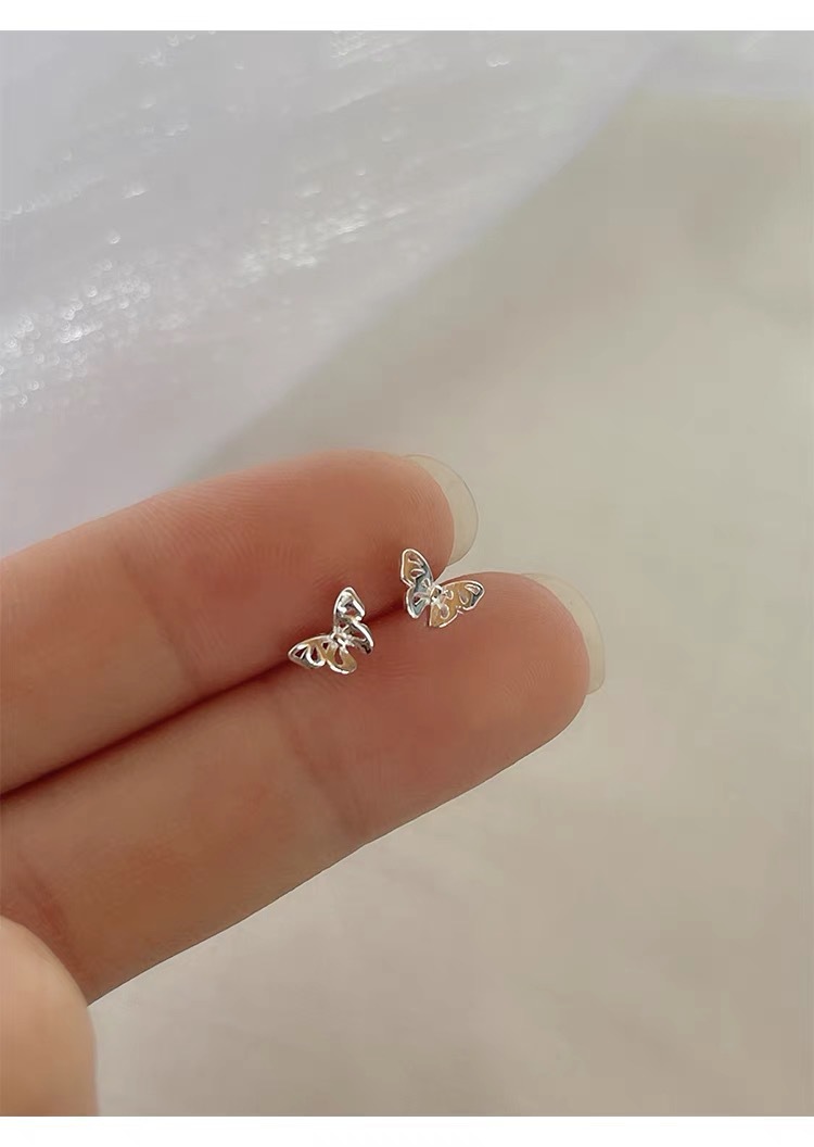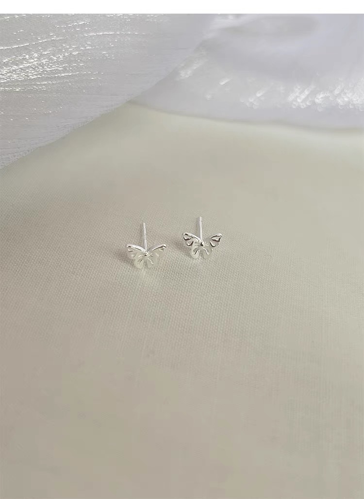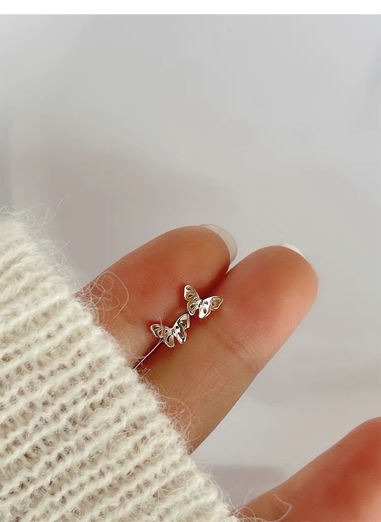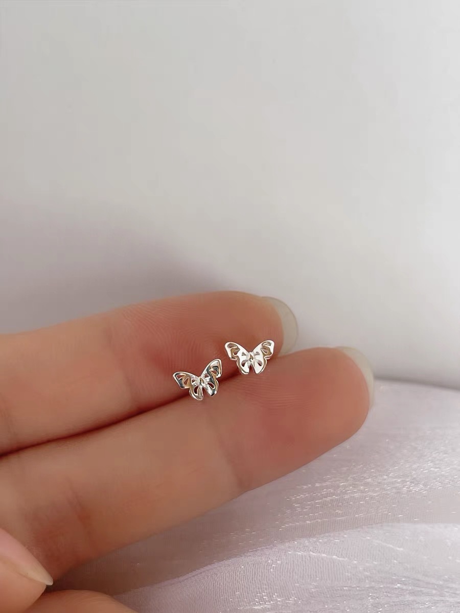 喜飾銀匠925純銀透かし彫り蝶耳釘シンプルで清新な個性耳骨釘甘くて小さくて高級感があります。