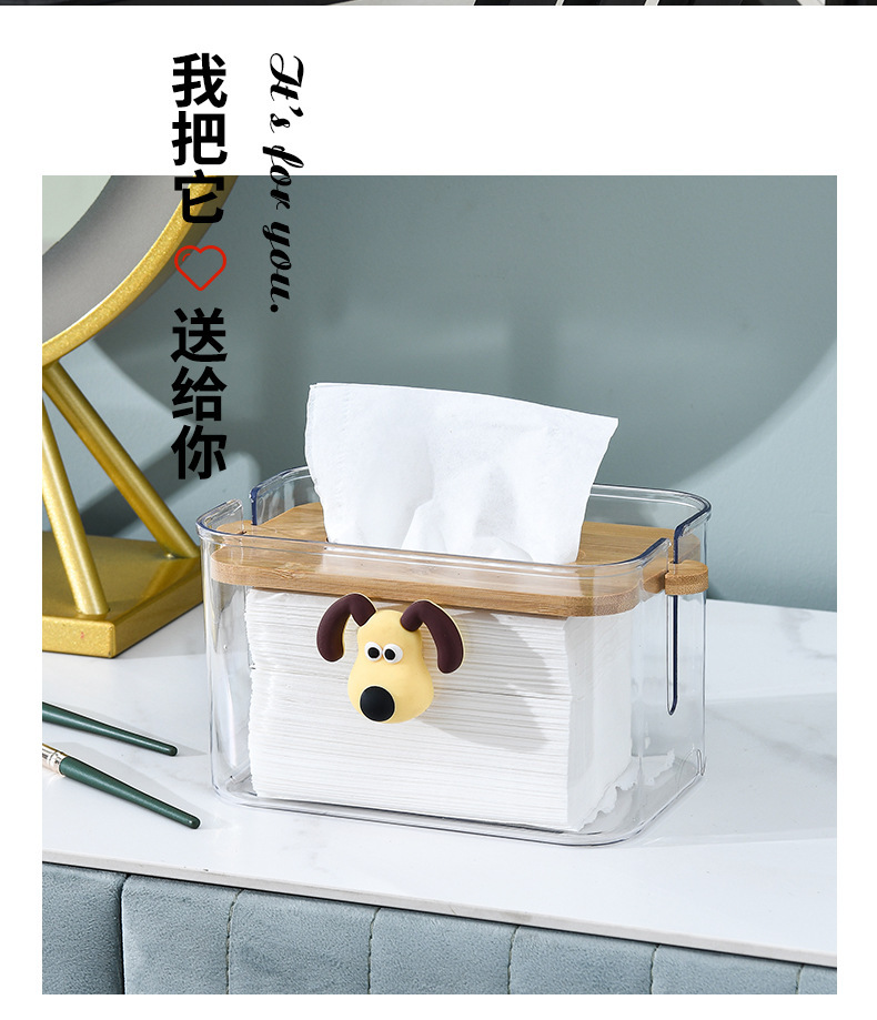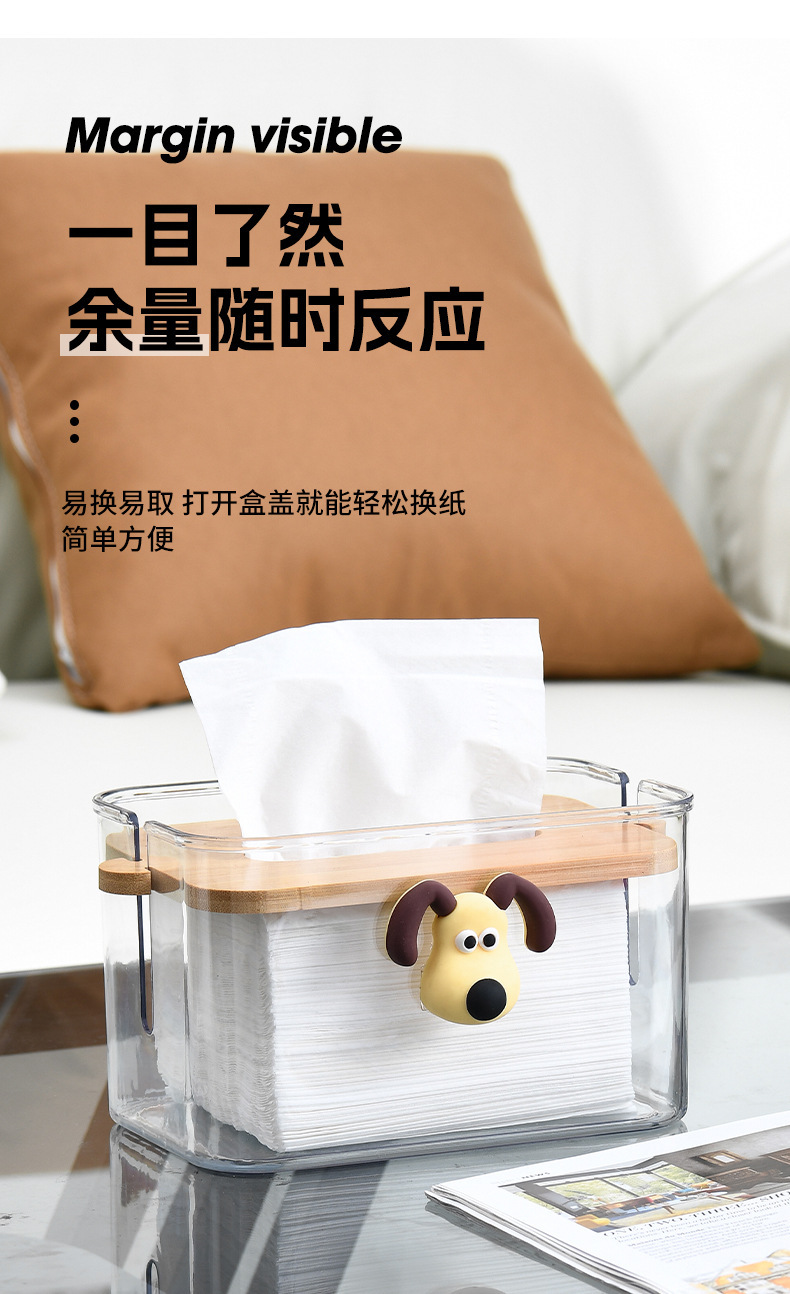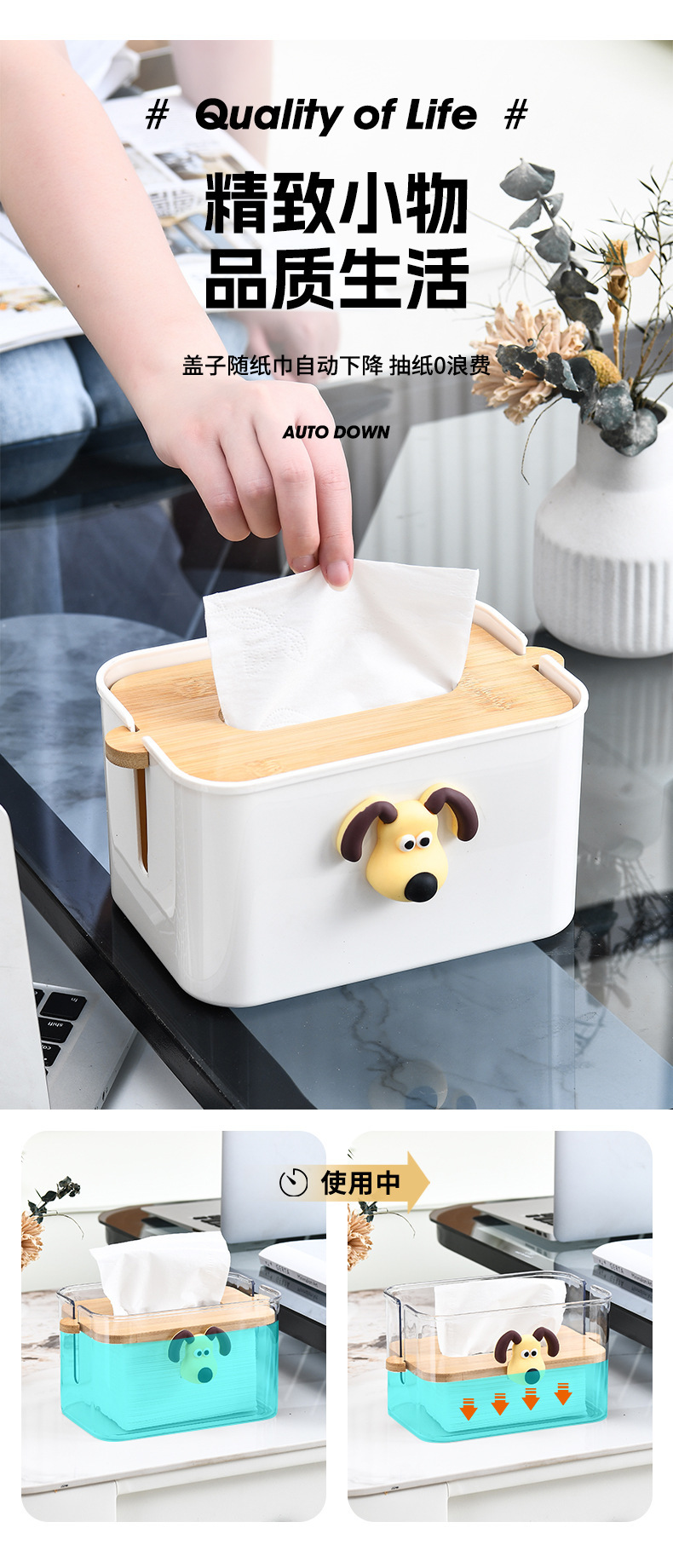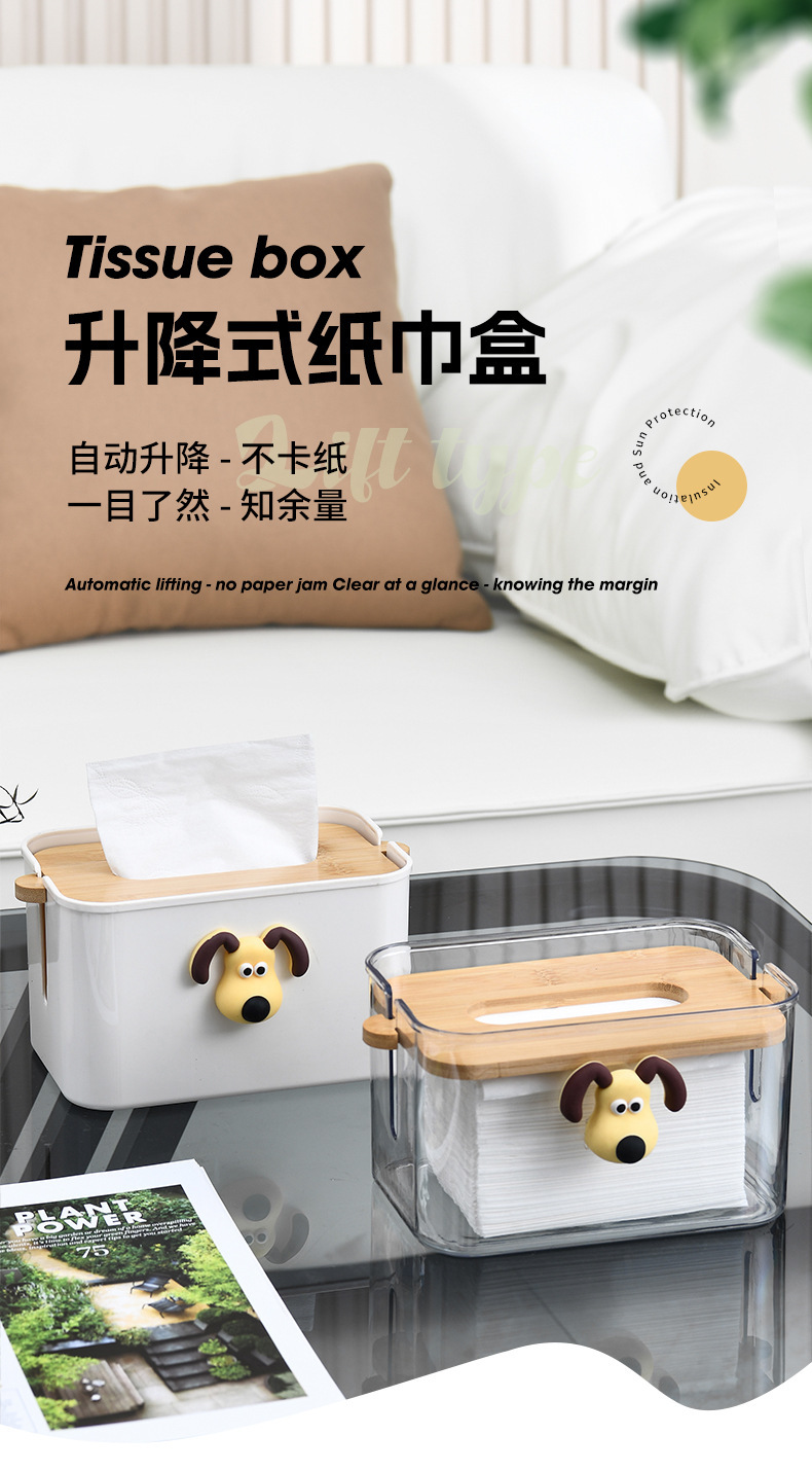 竹蓋PET透明昇降ティッシュケース日本式家庭木製客間萌えアニメナプキン引き出し箱