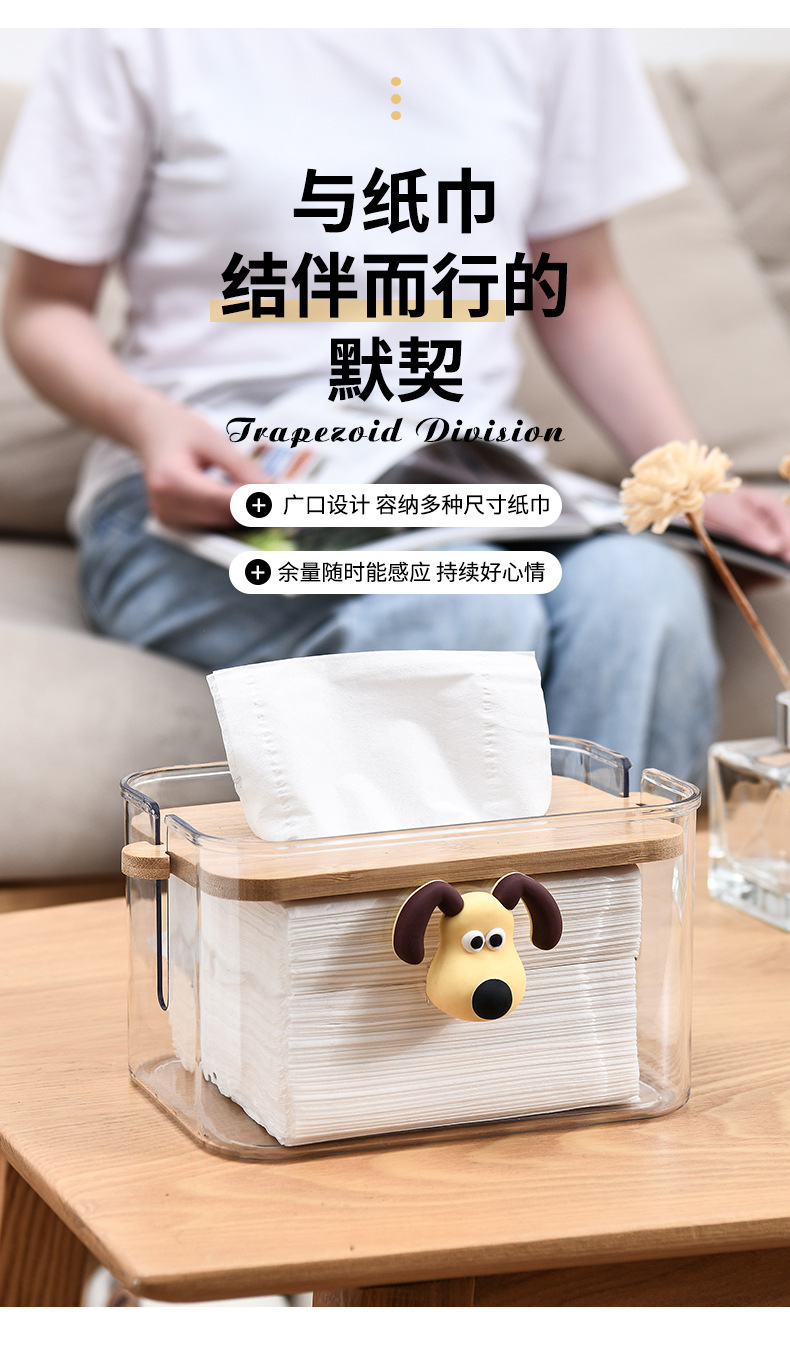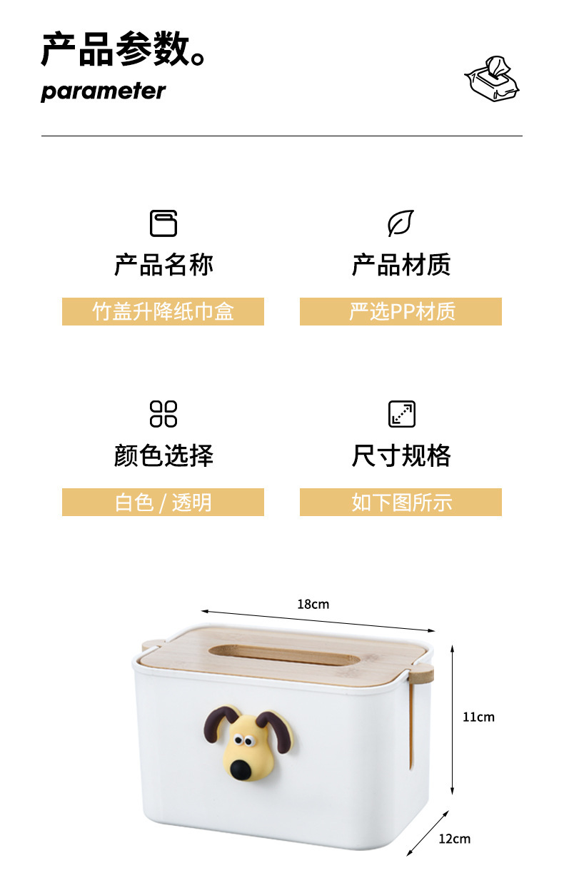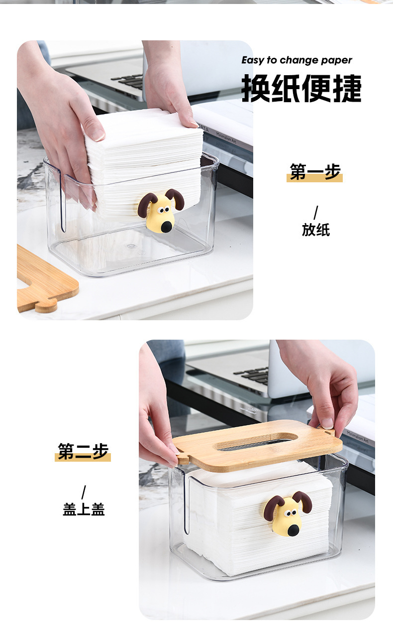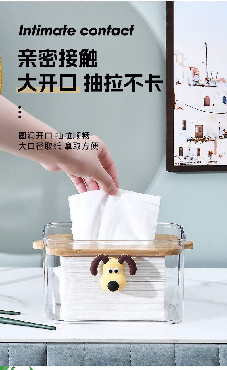 竹蓋PET透明昇降ティッシュケース日本式家庭木製客間萌えアニメナプキン引き出し箱