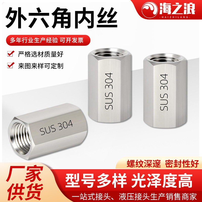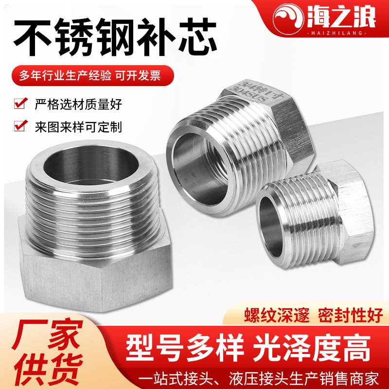 冷間据え込み304ステンレス補芯内外糸変径継手六角内外歯継手4分変6分卸売り