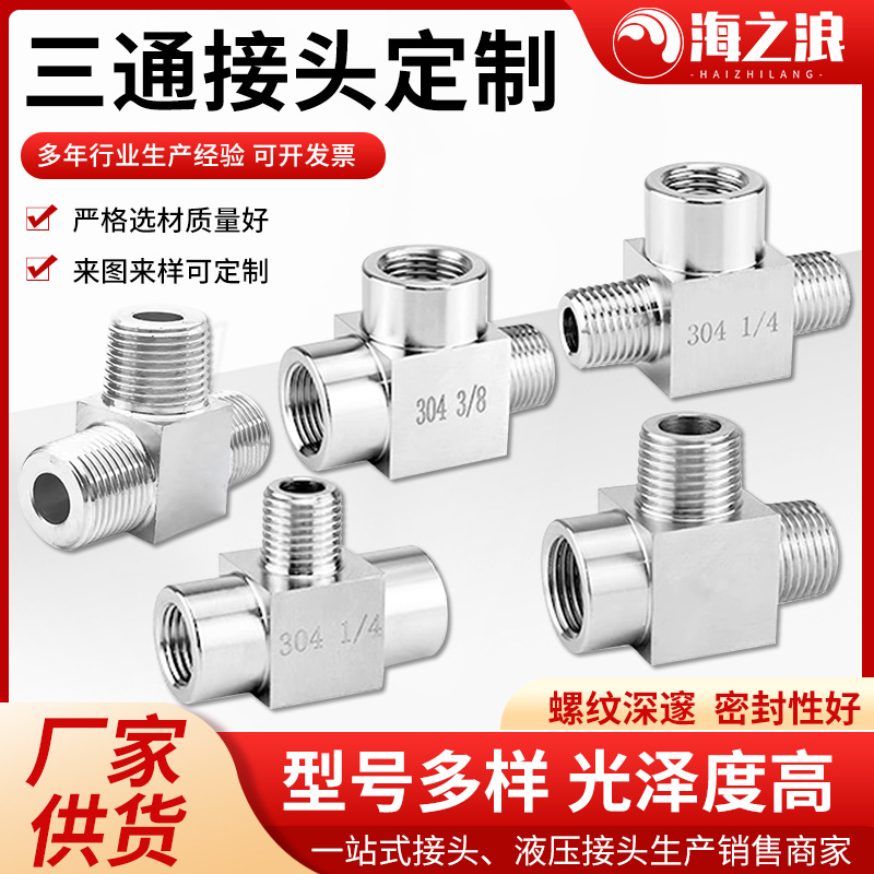 304 ステンレス鋼 3 方ジョイント 4 点高圧内線 3 方内歯空気水油圧角管チューブジョイント M20