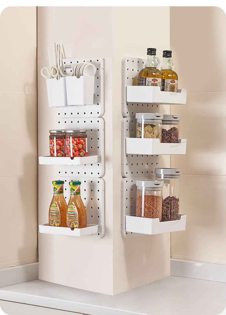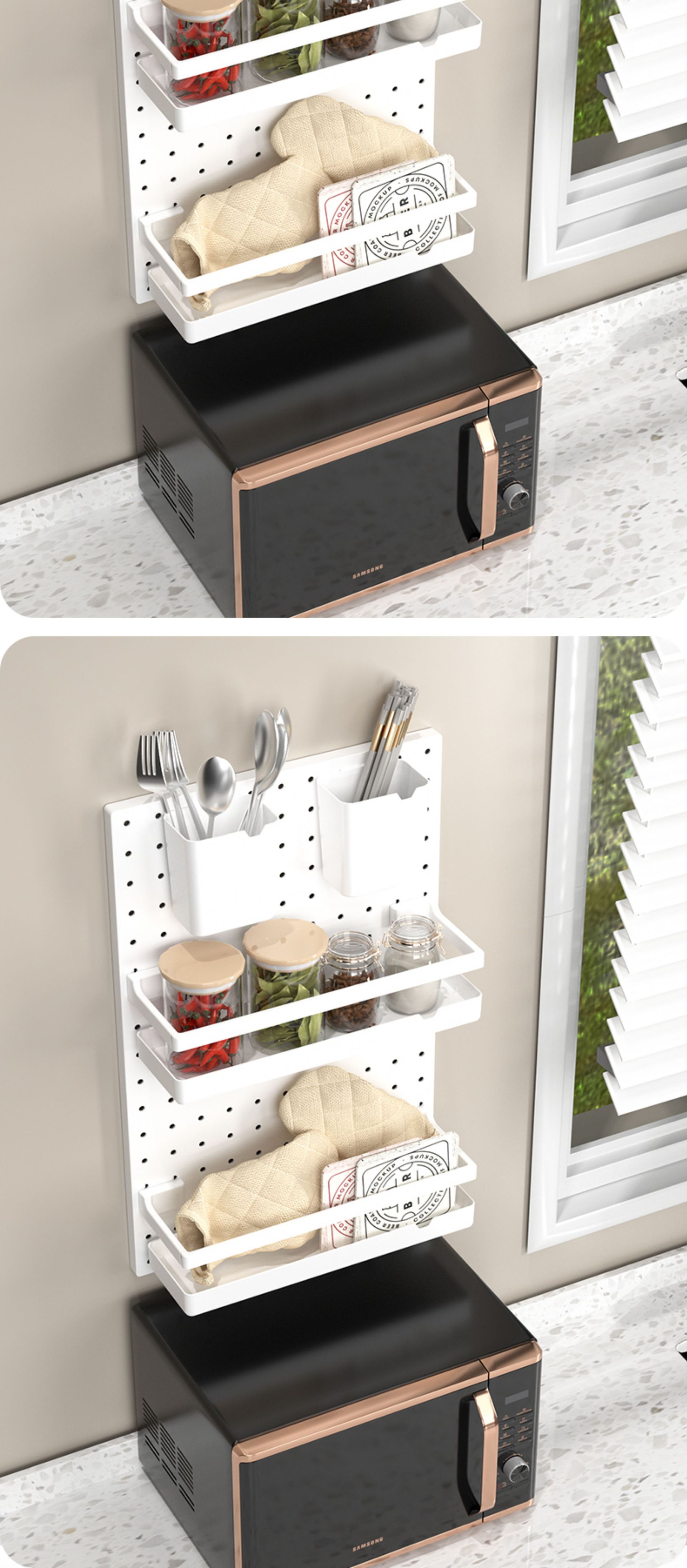 キッチン用穴あきボード収納ラック、食器棚、トレイ、壁掛け、穴あけ不要、家庭用壁収納、壁掛け式収納ラック