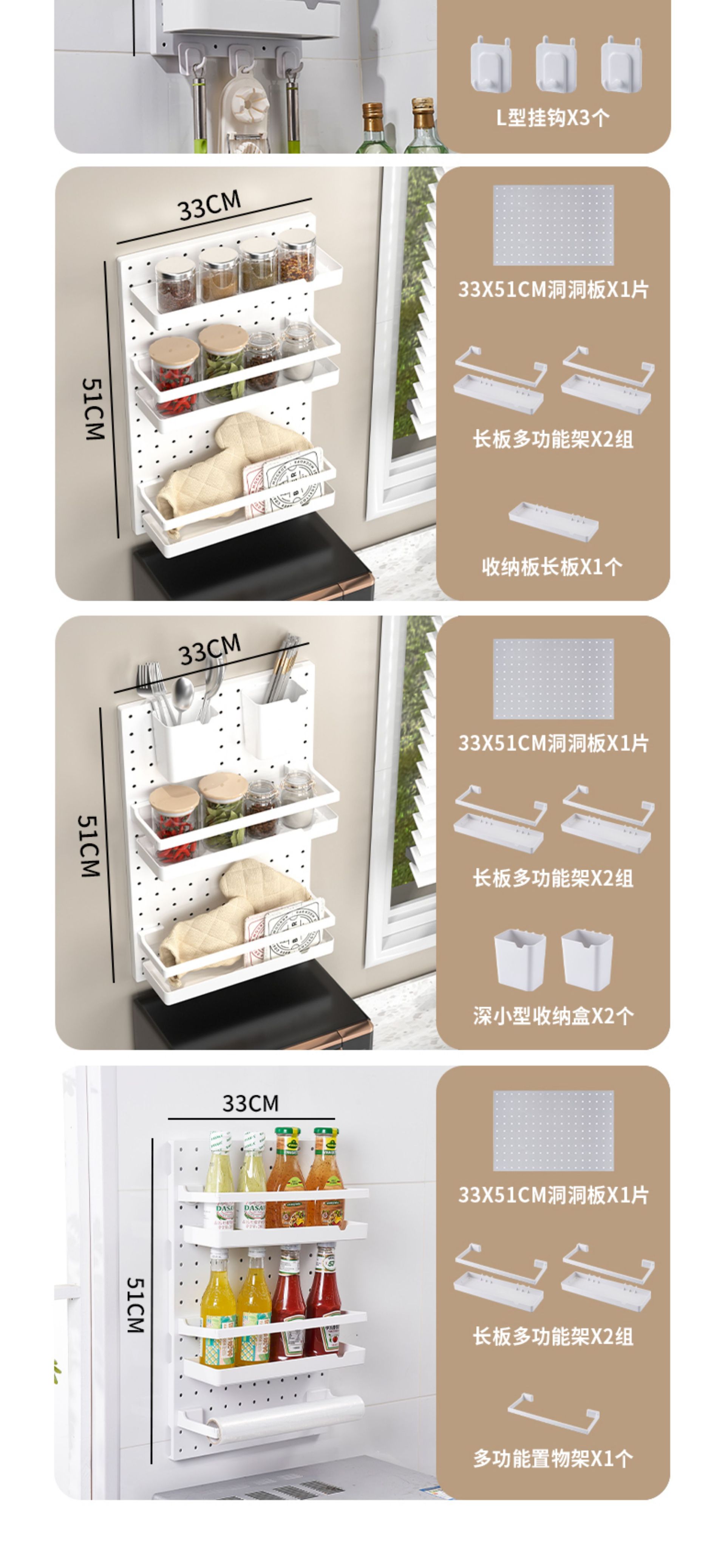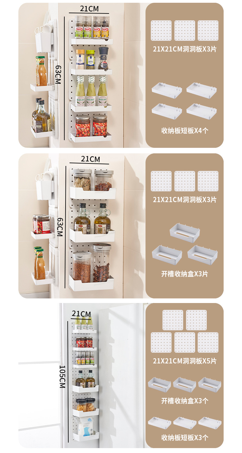 キッチン収納ラックキャビネットドアアーティファクトホールボードプラスチック冷蔵庫パンチフリー壁掛け多機能収納棚