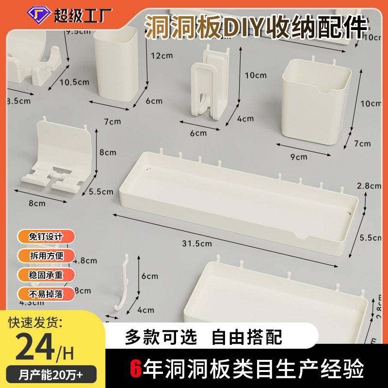 收纳洞洞板配件奶油色免打孔宿舍厨房卫浴墙上置物架圆孔墙上壁挂