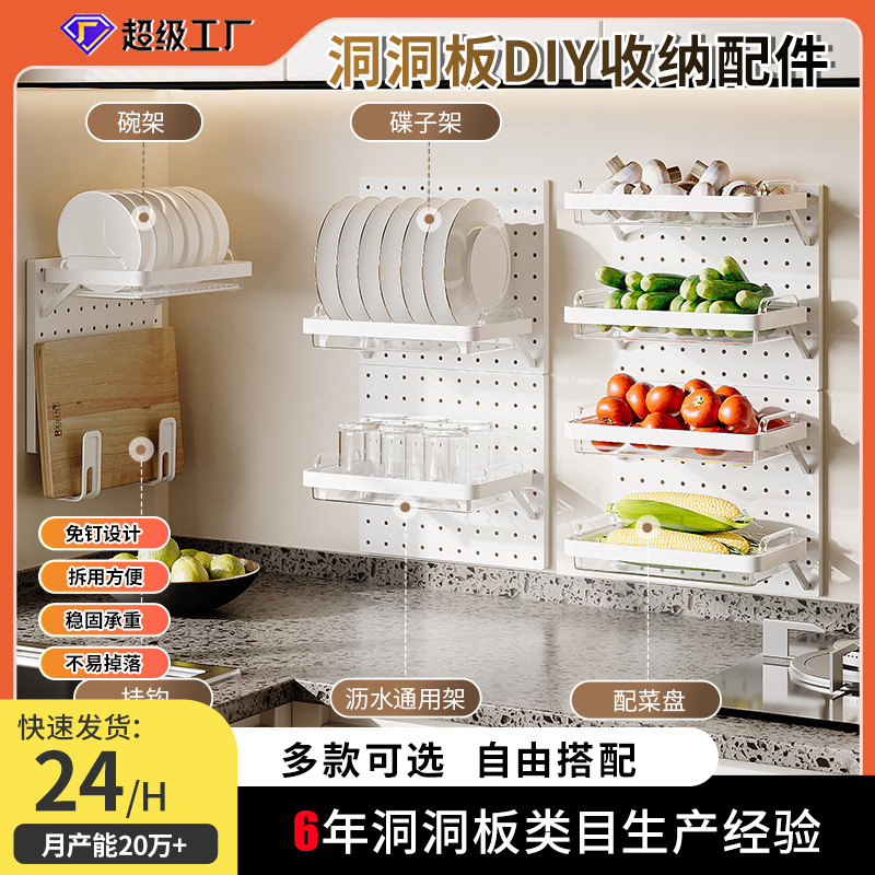 DIY洞洞板配件墙壁宿舍厨房卫浴架圆孔壁挂架储物架隔板多功能