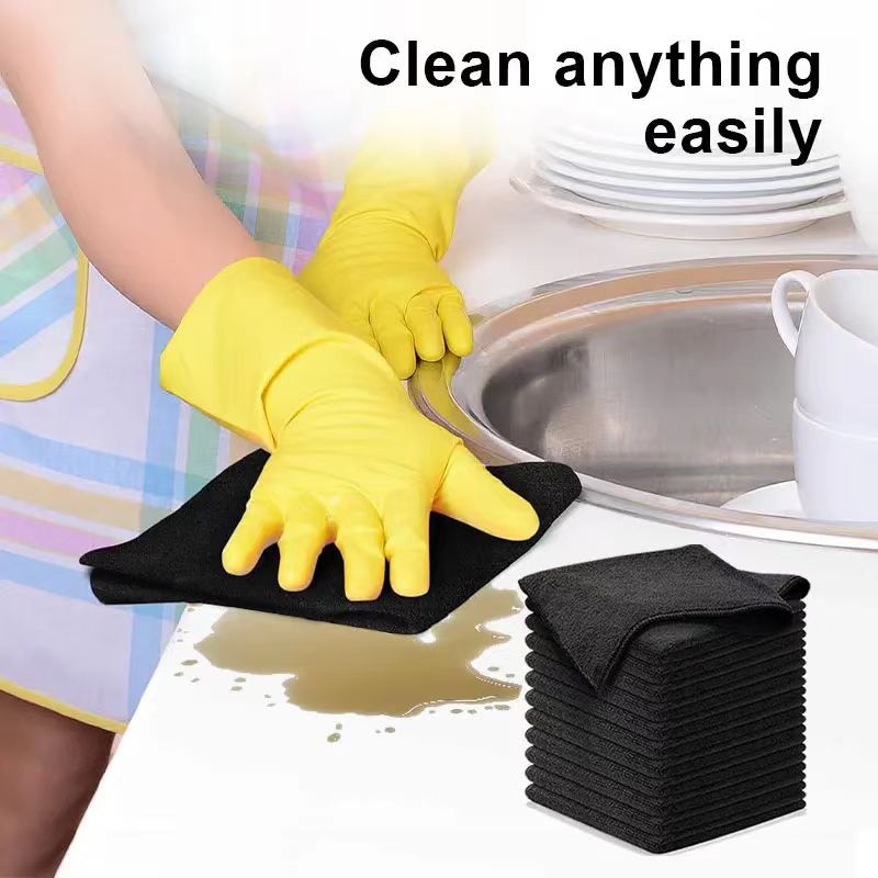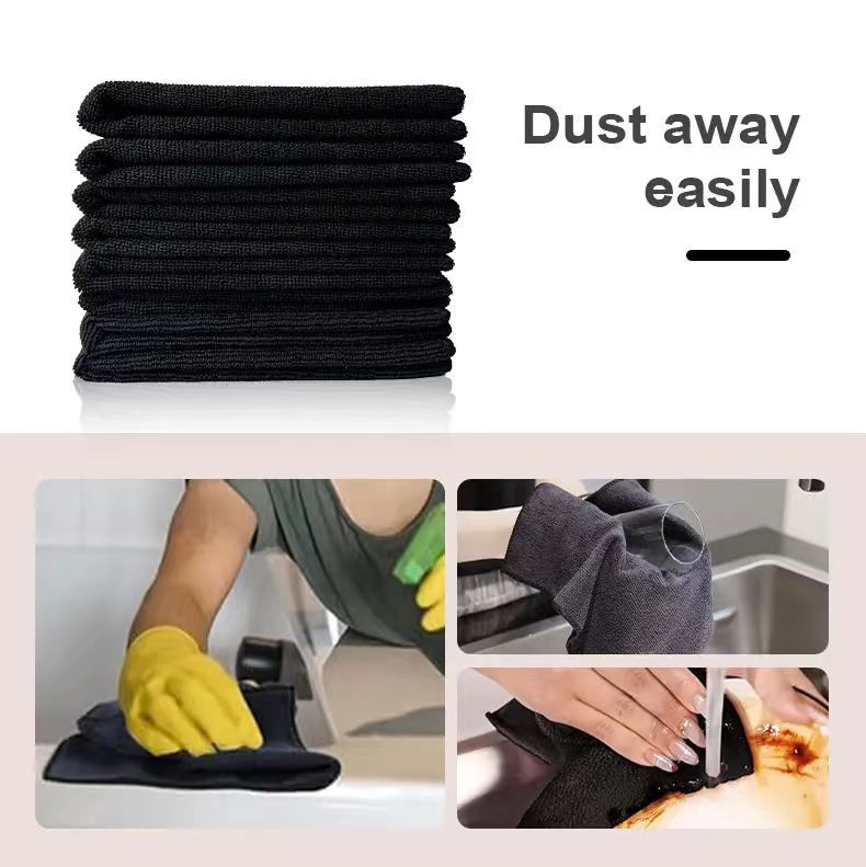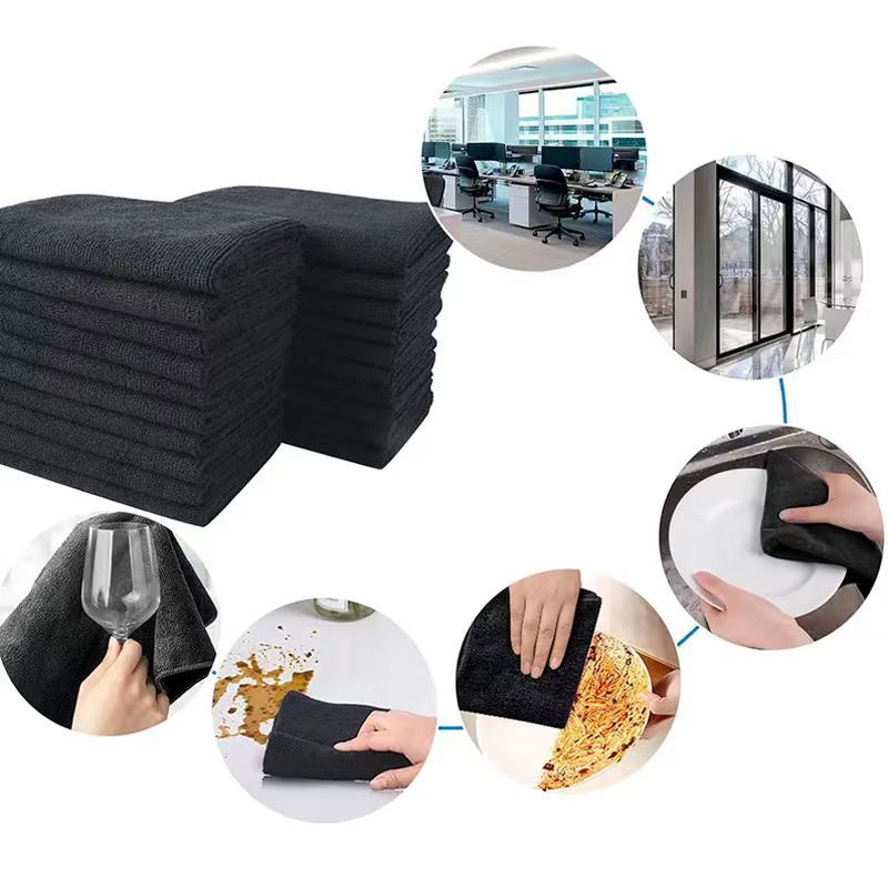 黒タオルtemuクロスボーダー人気洗車タオル家庭用キッチン雑巾柔らかい吸水清潔タオル