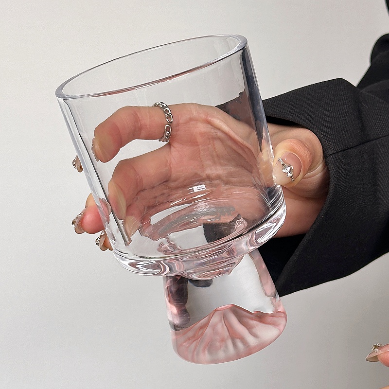 ピンクマウンテンガラスカップウォーターカップハイエンドニッチクリエイティブハイドリンクカップコーヒーカップコーンカップワインカップ