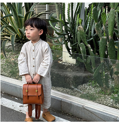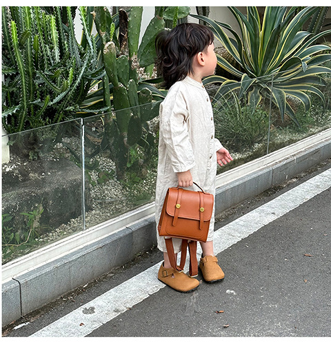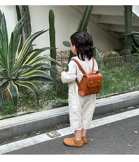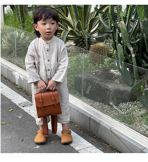 英倫学院風小学生のかばんはシンプルで純色のレトロなカバーをしています。